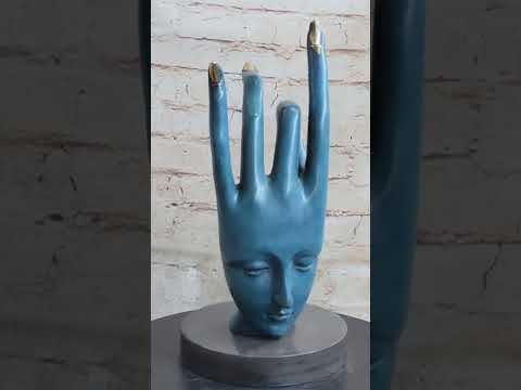This captivating bronze sculpture is an extravagant and abstract piece of art that commands attention. Crafted with meticulous detail, it features a realistic-looking human hand and forearm, with the wrist slightly bent and fingers gracefully spread apart. The sculpture takes a captivating twist as an intricate human nose and mouth are fused into the top of the hand, immediately capturing the viewer's gaze. This unique and thought-provoking artwork invites interpretation and engages the imagination. The artist's intention behind the sculpture remains enigmatic, leaving room for contemplation. The piece conveys a range of emotions, perhaps evoking deep sorrow, anger, or even pain. It is a truly one-of-a-kind creation that captivates with its intricate design. The sculpture's striking green patina finish adds depth and character, achieved through the traditional "lost wax method." It is mounted on a solid black marble base, adding a touch of elegance to its display. This remarkable sculpture bears the signature of the renowned artist Salvador Dali, further enhancing its artistic value and quality.