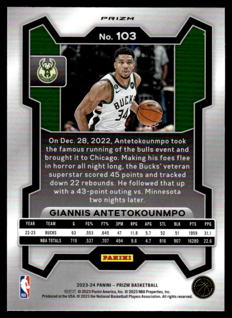 2023-24 Panini Prizm Rwb Giannis Antetokounmpo Milwaukee Bucks #103
