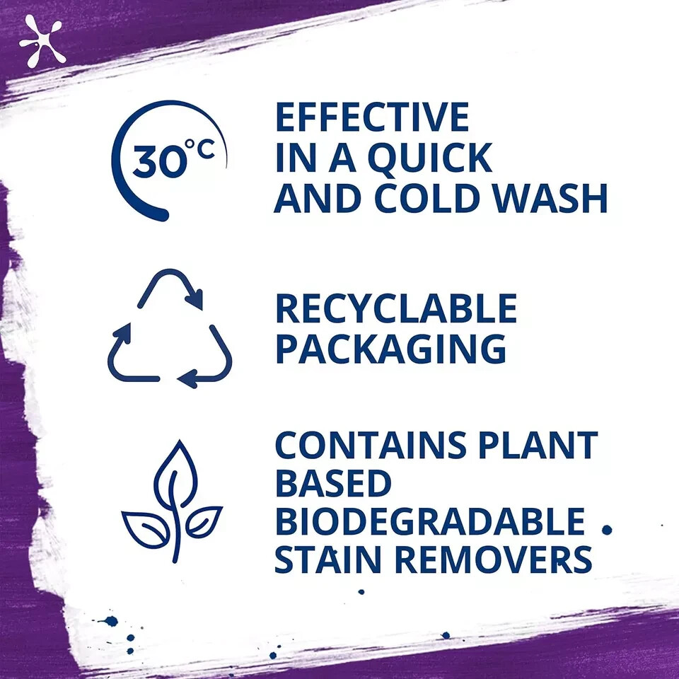 - With this liquid detergent, you can get outstanding stain removal of tough on stains like mud, yoghurt and jam, in a quick and cold wash