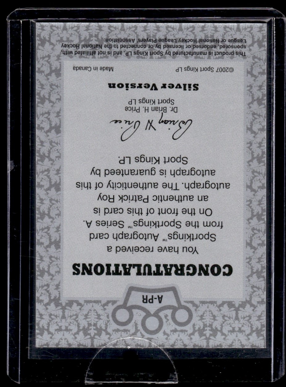 | 2007-08 In The Game Sportking Autographs Patrick Roy Auto Montreal Canadiens |