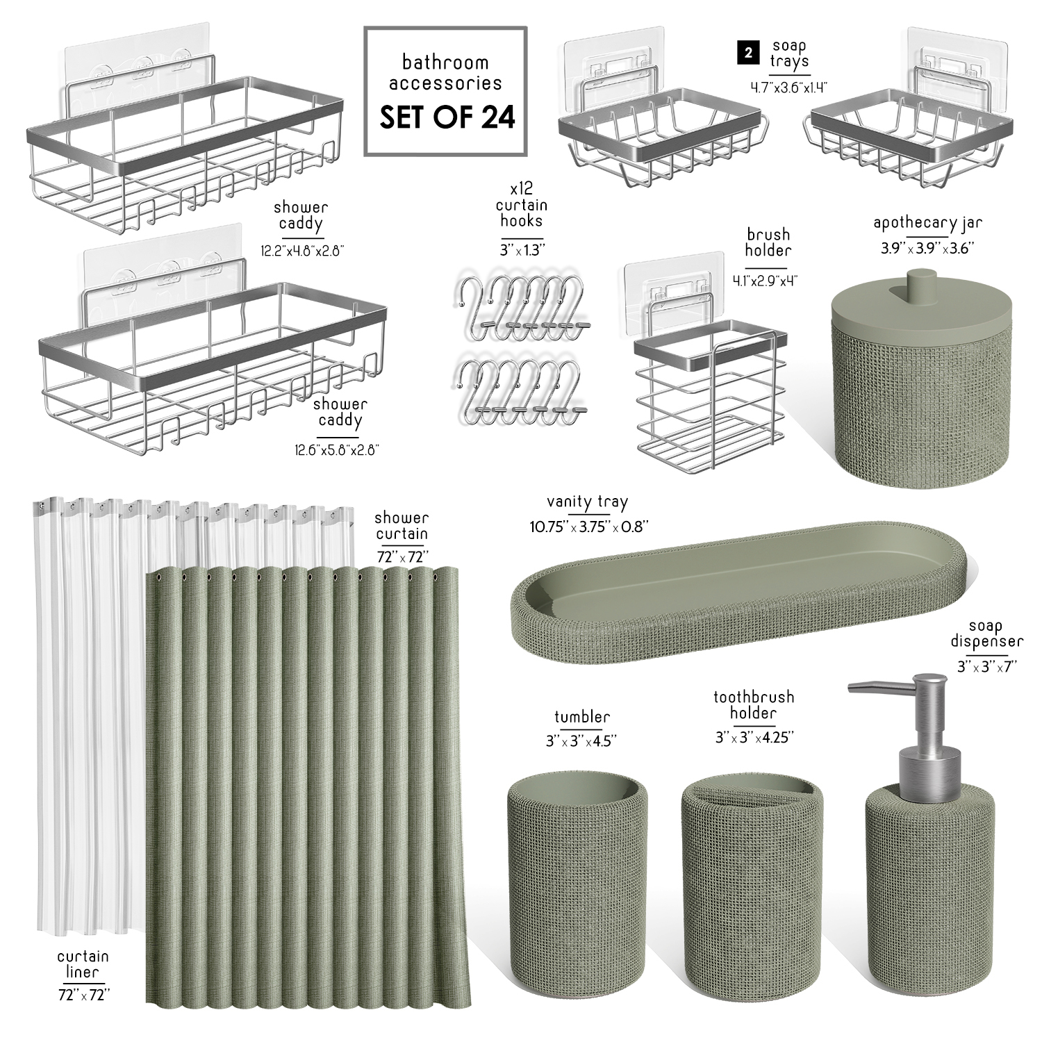 | Size | Complete Set + Shower Caddy |