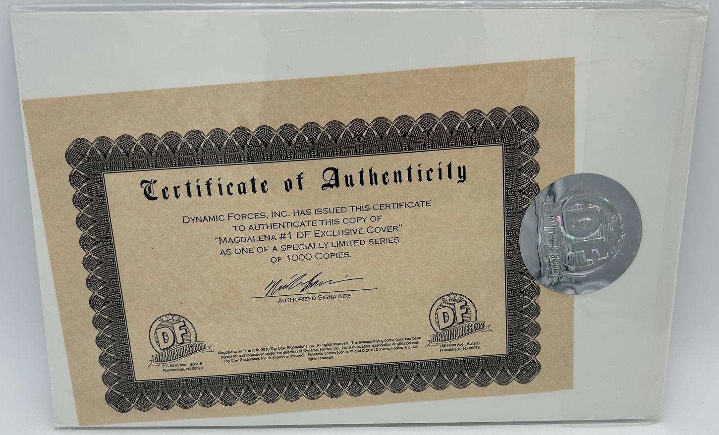 A fantastic copy of The Magdalena from Top Cow. This is the Dynamic Forces version and it is sealed with the certificate on the back. It is limited to 1,000 copies. It is super nice and unread. In fantastic unread mint condition. A great chance to get this book at a good starting price. Pictures are very representative. Please look at my other auctions for a bunch more comics including many variants. This will ship very secure and in a box. I am not a dealer but a discerning collector who is weeding out my collection. Please feel free to ask questions. Winning bidder will pay $7.00 postage and handling for this lot and I will combine shipping and I will ship in a box. As always there are no reserves on my auctions. I have been selling on eBay since 1996 so please bid with confidence. Email questions are welcome and as always thanks for looking! Click here to view my other auction items |