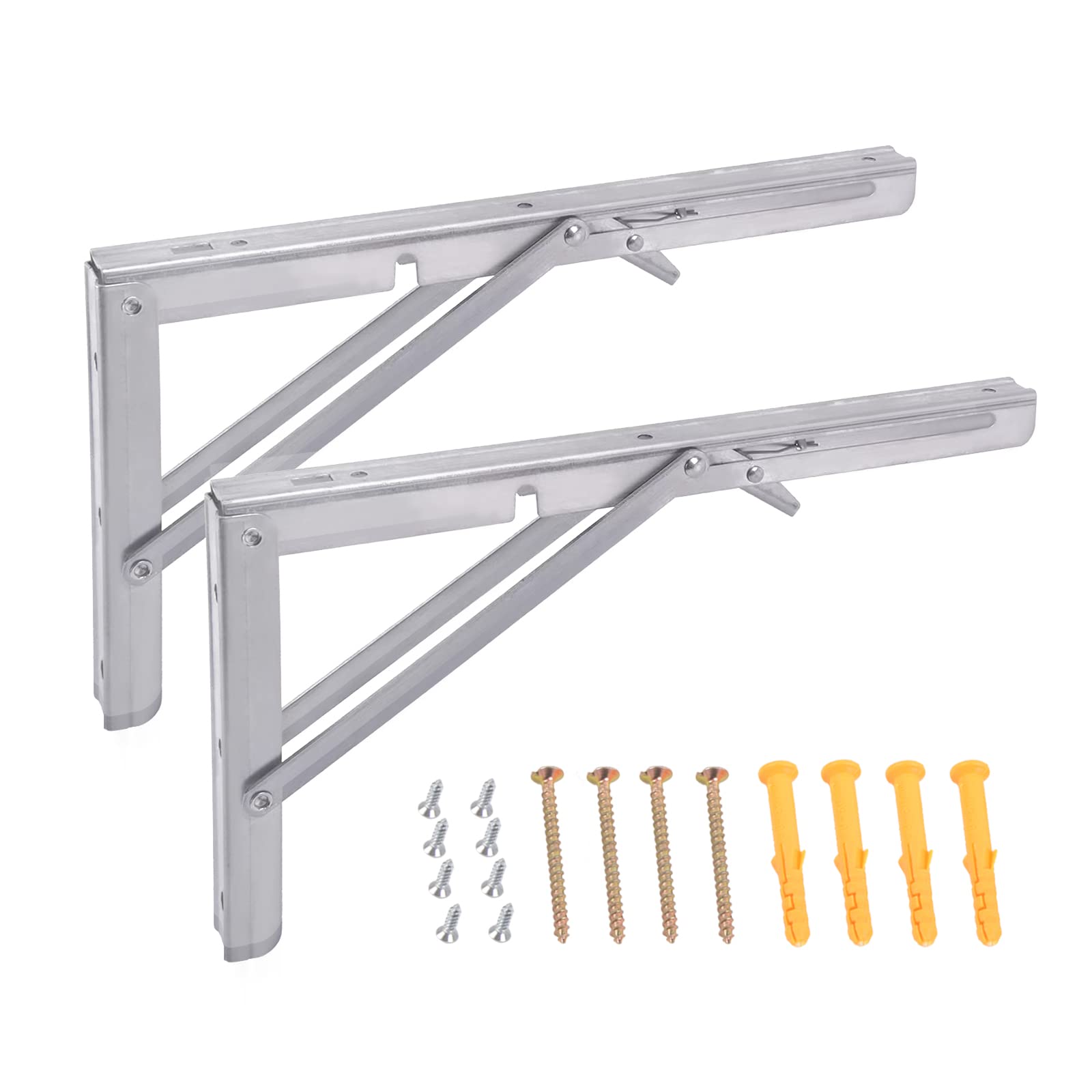 【STURDY AND DURABLE】The collapsible shelf bracket is made of high quality stainless steel with strong smooth surface, and adopts triangle structure, which is the sturdiest construction in wall brackets currently.