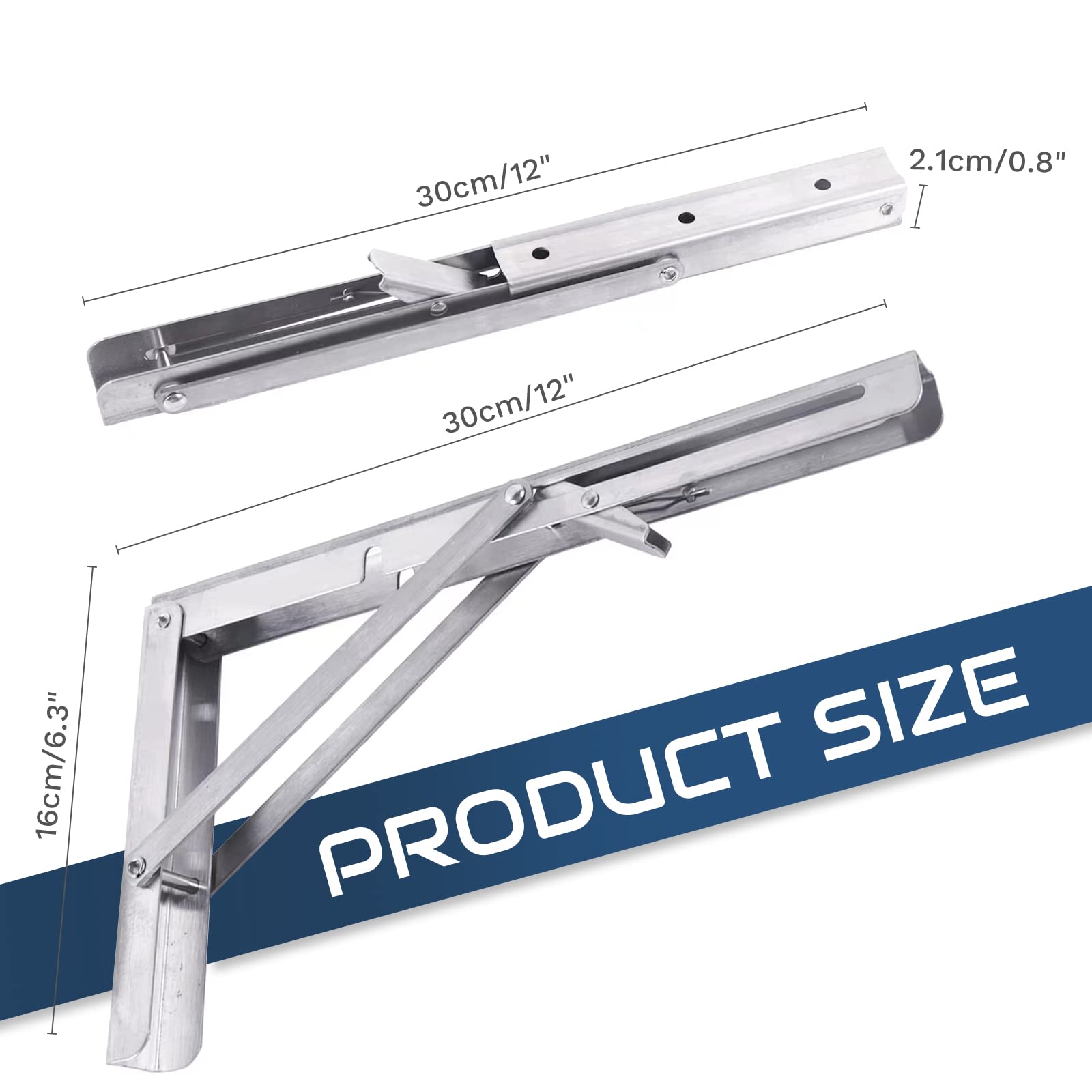 【BRACKET SIZE】This folding shelf bracket dimension:30cm*16cm/11.8*6.3inch(before folding), 30cm*2.1cm/11.8*0.8inch(after folding); Max. load approximately 330lb/150kg; Hole: approximately 5mm/0.2".