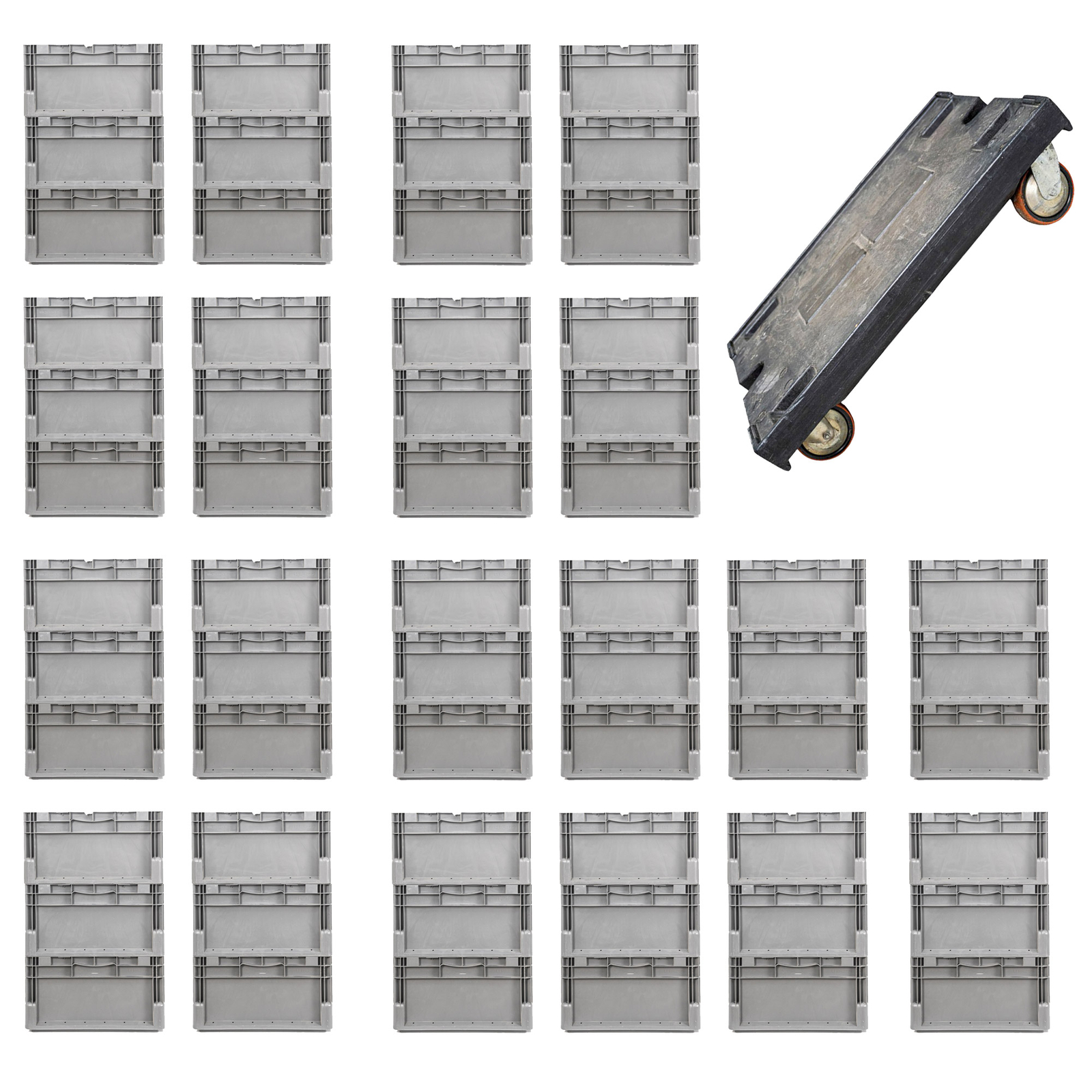 Sofort Kauf 36x EuroBox ELB 4220 40x30x22 cm grau inkl. Transportroller Kunststoffbehälter