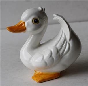Here is a great and unusual ceramic-porcelain hand painted Made in Japan Lefton Duck cartoon-comic style Figurine. It is Adorable. It is marked on bottom with signature Lefton foil label Japan-There are a couple paint chips on the Yellow beak-SEE PHOTOS. It measures about 3 inches tall and about 3 inches wide. Grab this great and unusual collectible while you still can and show it off and be the envy of all of your friends and family.