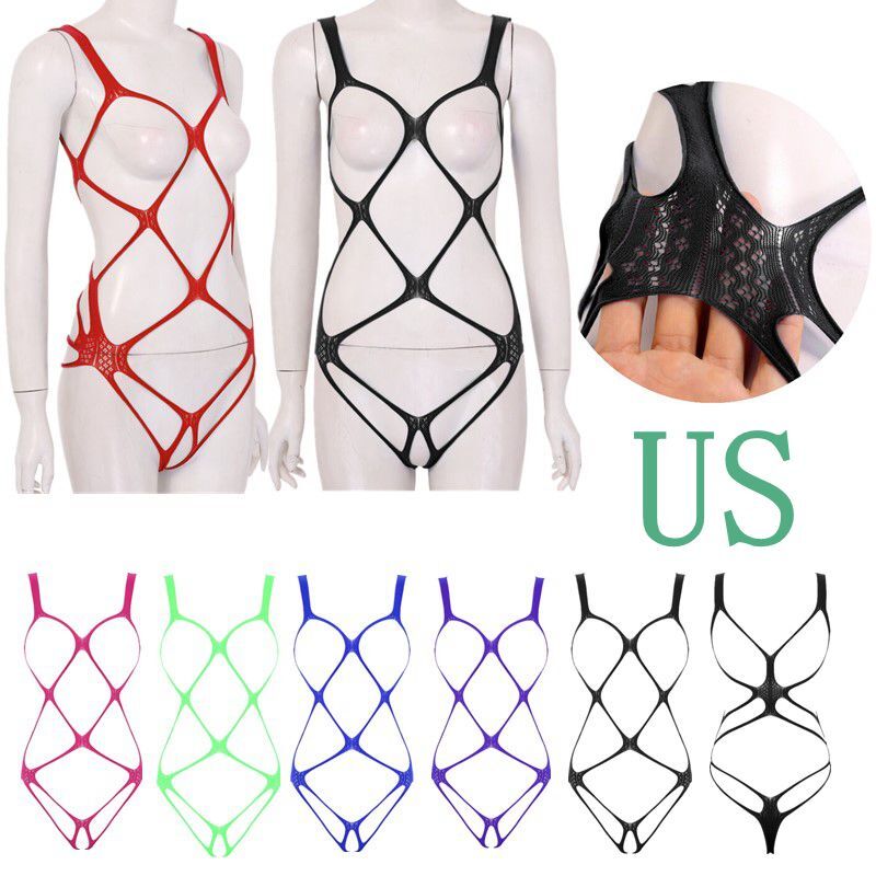 Sleeveless, open bust and high cut legs design, solid color, pull on closure.