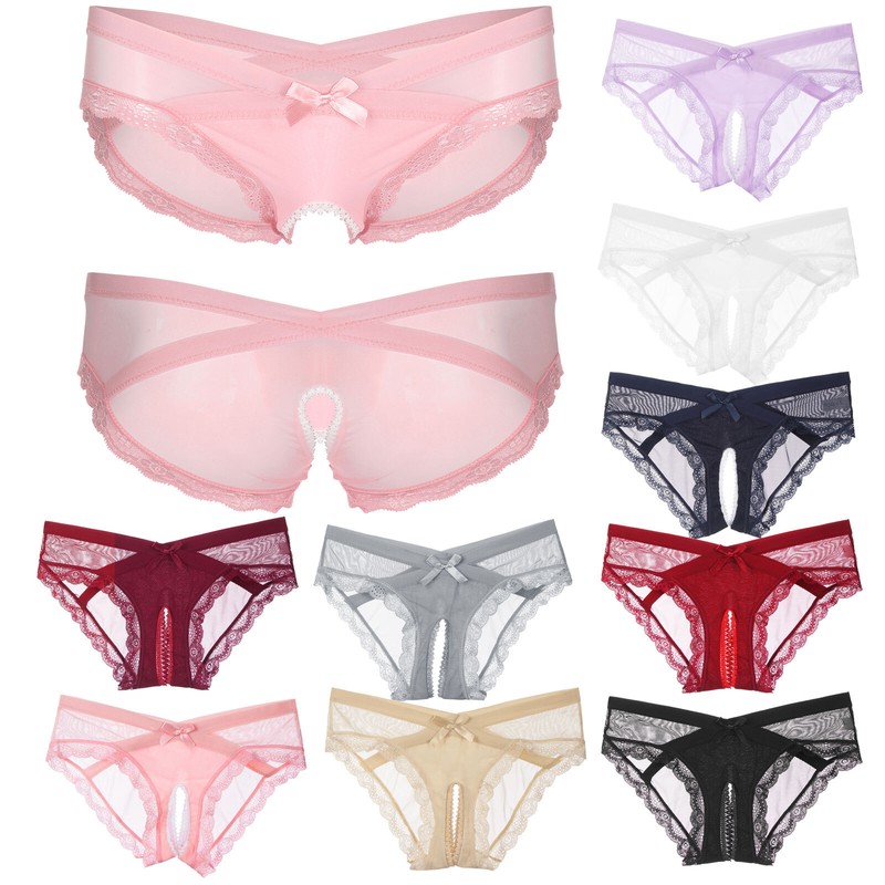 US Men Sissy Lace Bow Panties Low Rise T-Back Briefs Thongs Crossdress Underwear