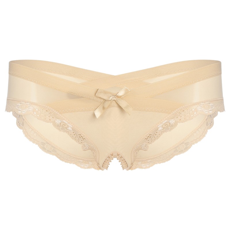 Low rise briefs with comfy elastic waistband, lace trim, bowknot decoration.