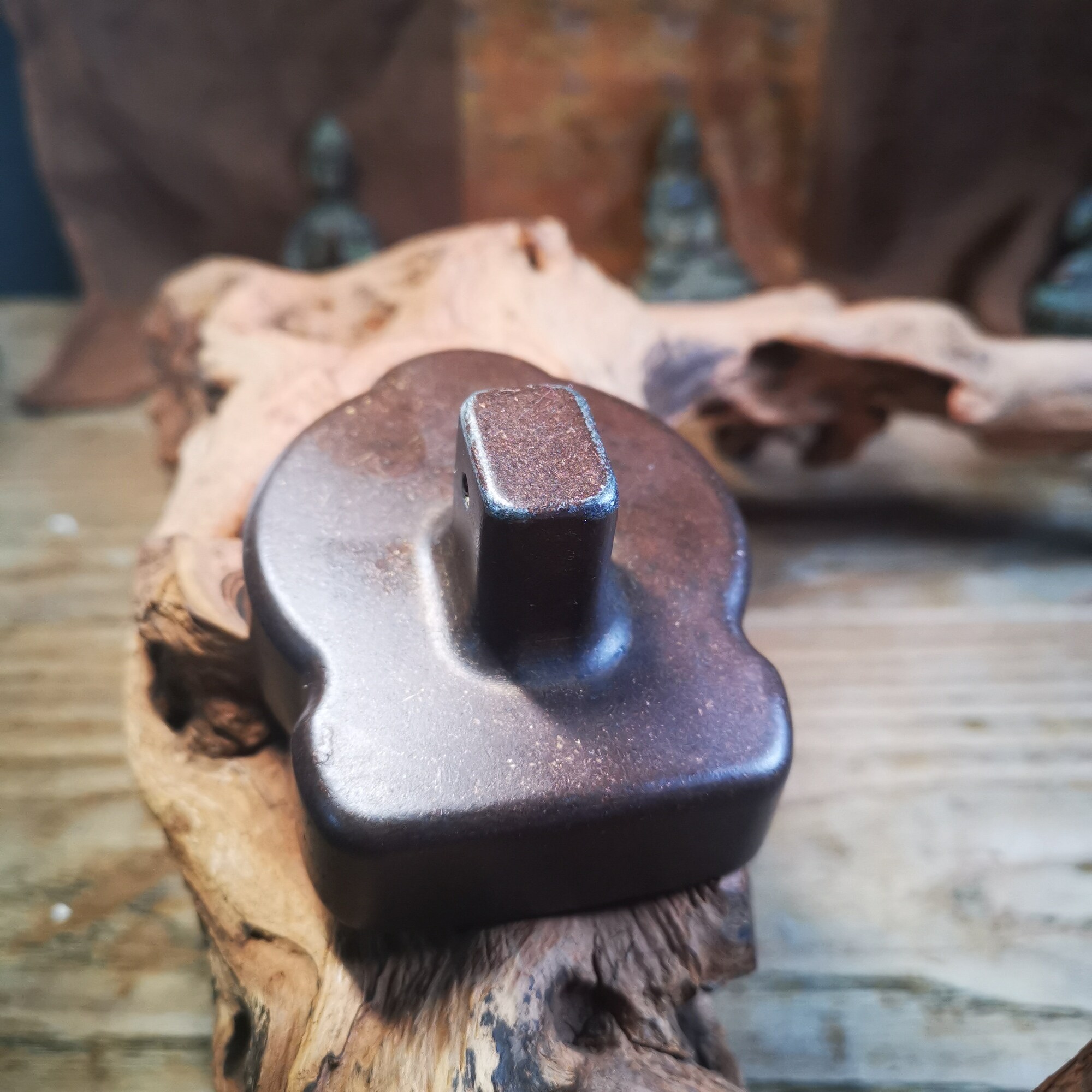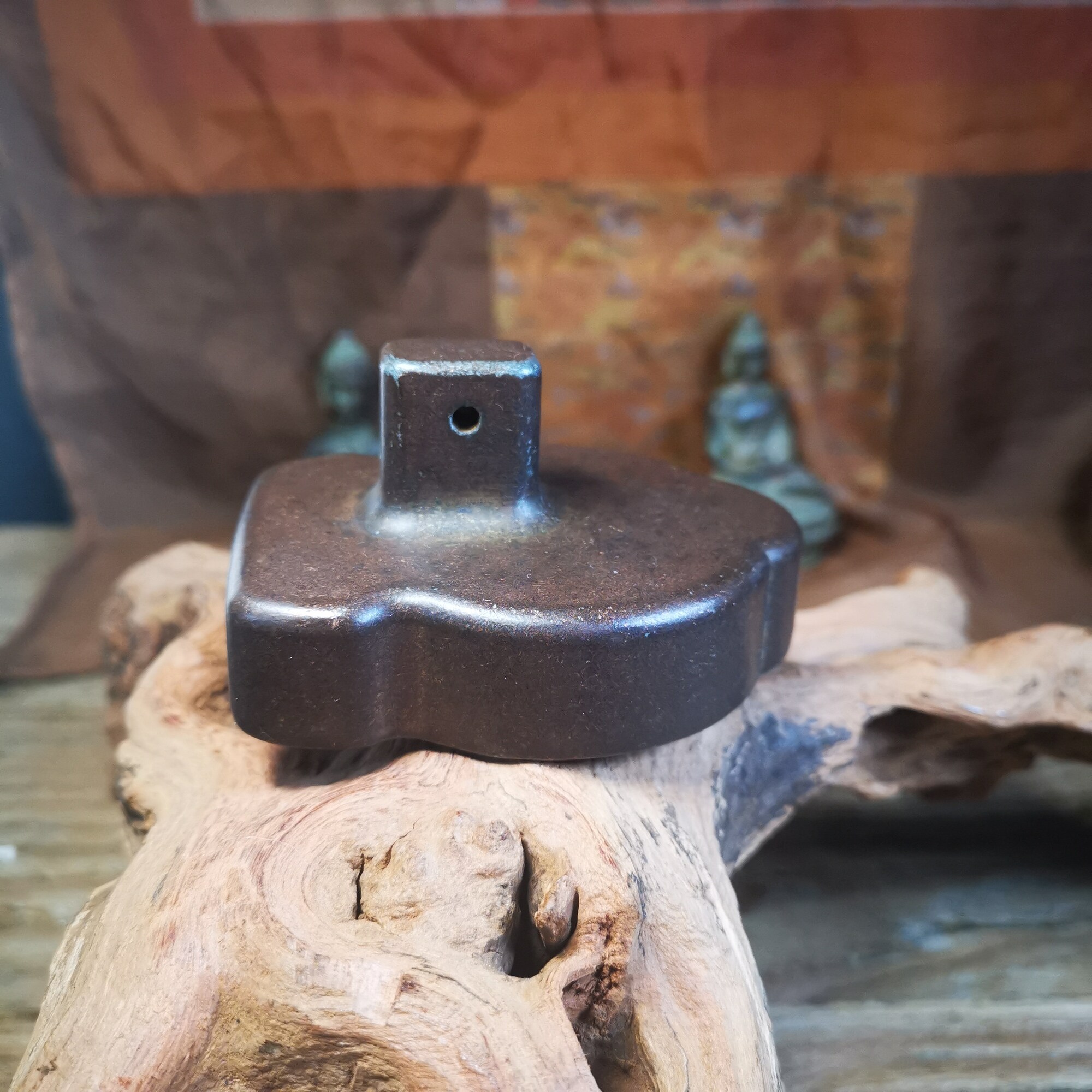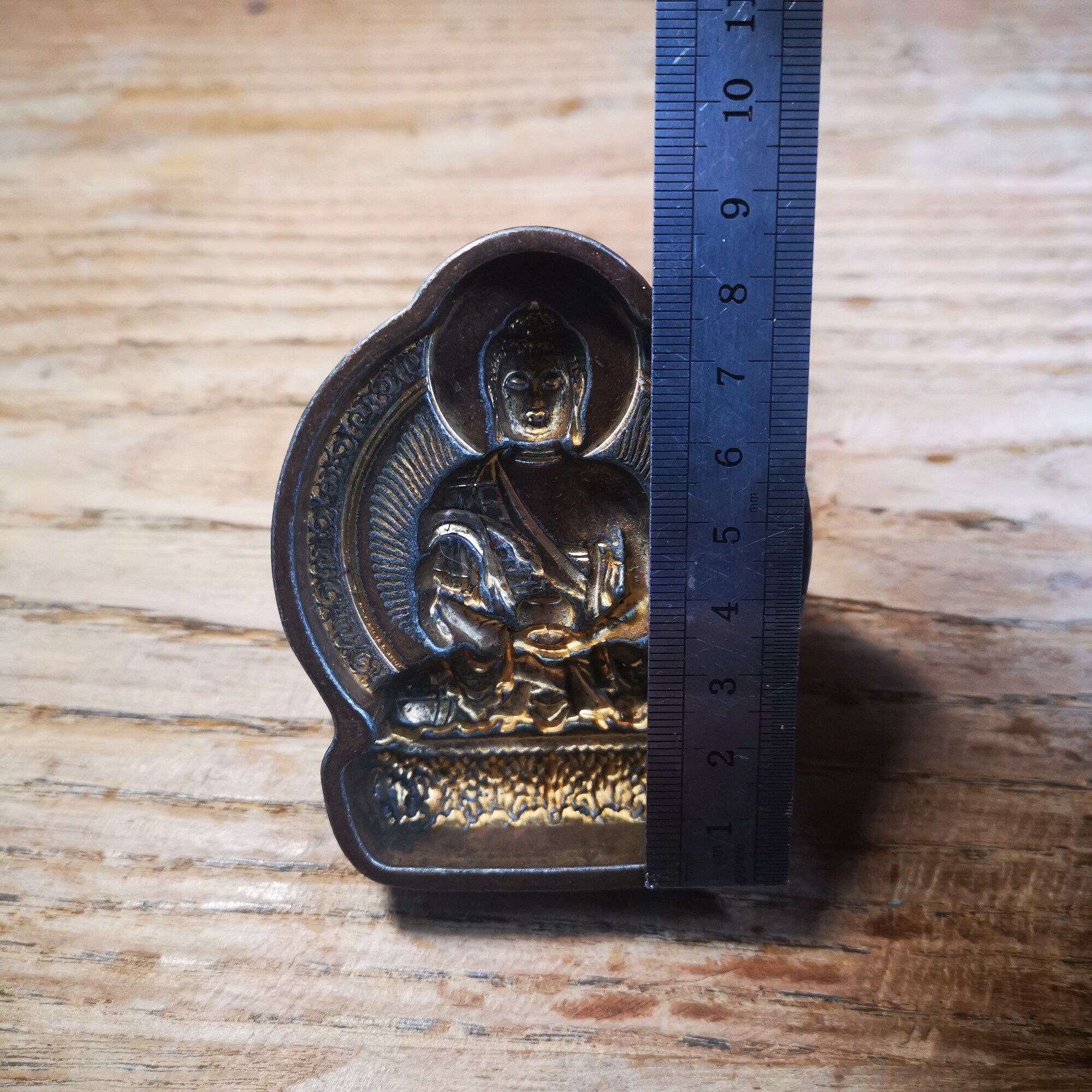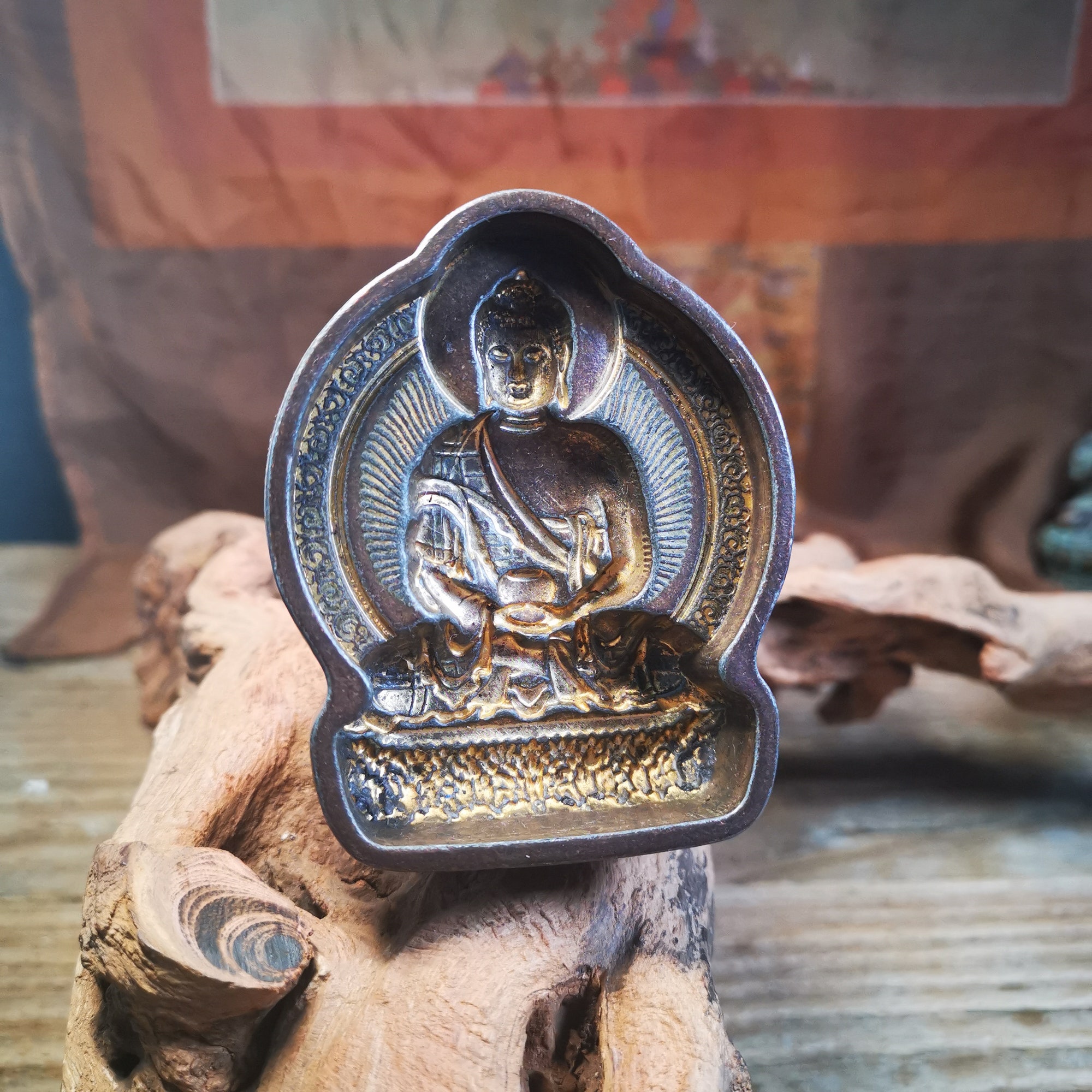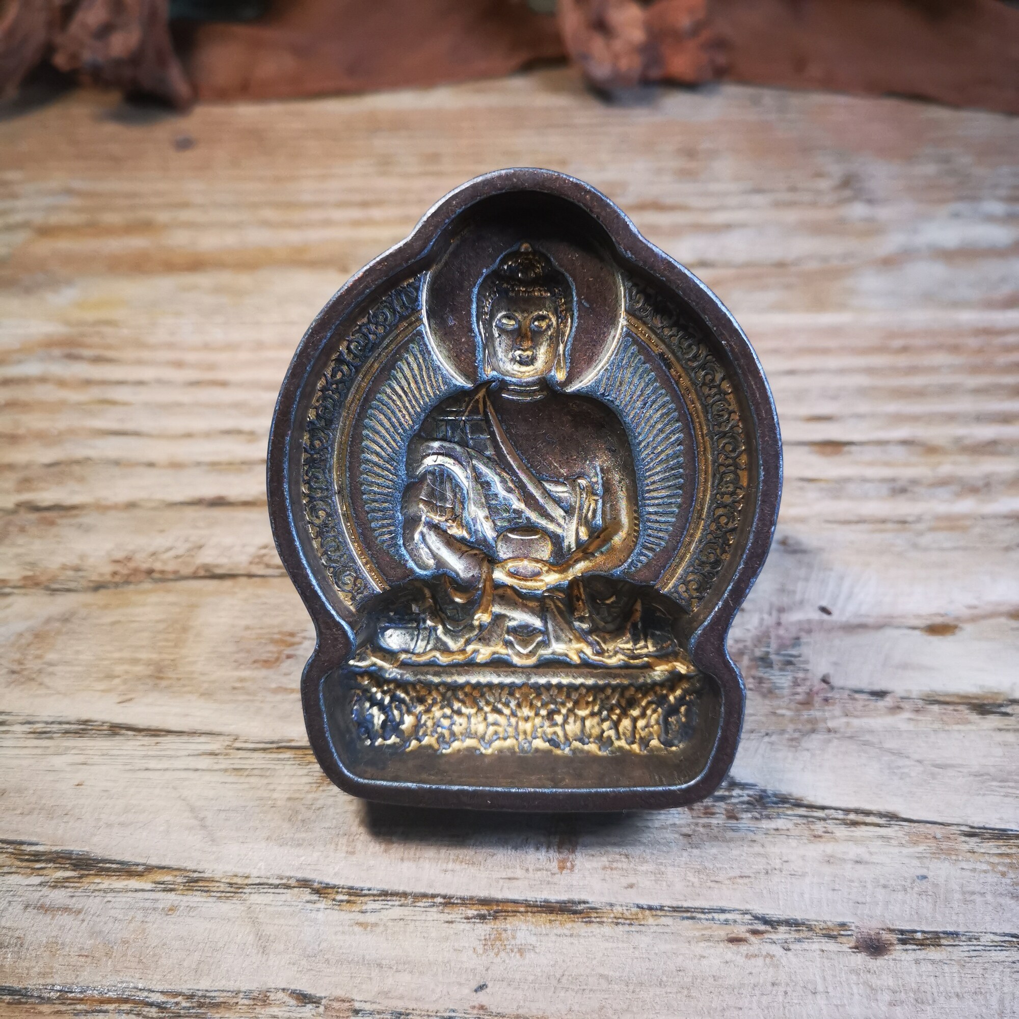 Tsa Tsa originated from India and was introduced to Tibet in the seventh century. It is extruded through a metal mold, and the cement is mixed with wheat grains, treasure powder, spices or the ashes of the monk. The patterns on it were mainly in Indian style in the early days, such as the Sky Tower, Gate Tower, Bodhi Pagoda, and the mantras of the Prajna Paramita Heart Sutra. Later, Tibet began to make its own molds, and the patterns of gods and Buddha images and the six-character mantra began to replace the earlier Indian style.