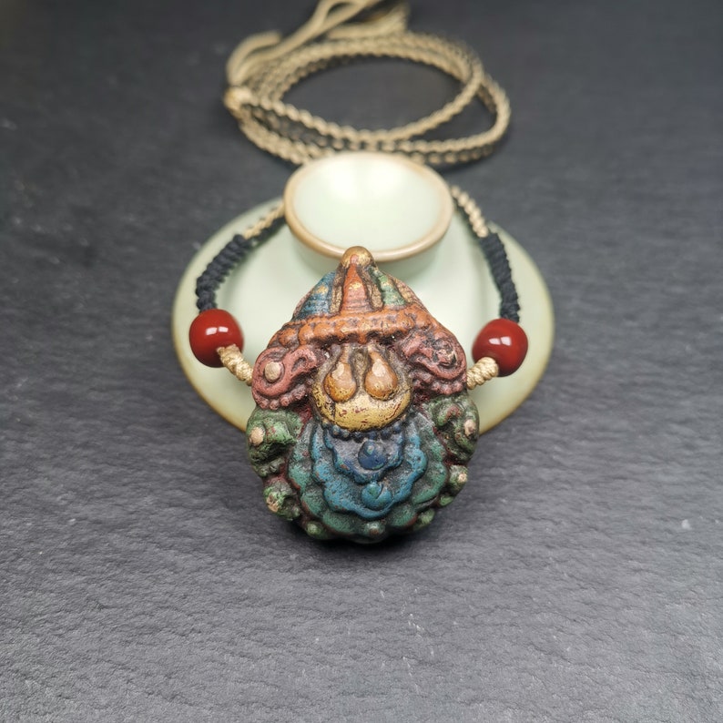 This Stupa and Scorpion Guru Tsa Tsa Statue is handcrafted by Tibetan artisans, blessed in Gengqing Monastery,Dêgê County,Tibet, made of clay,about 30 years old.