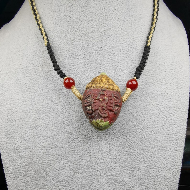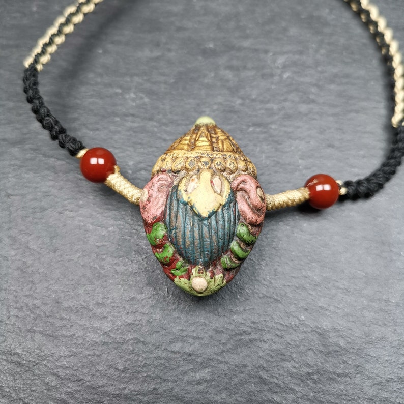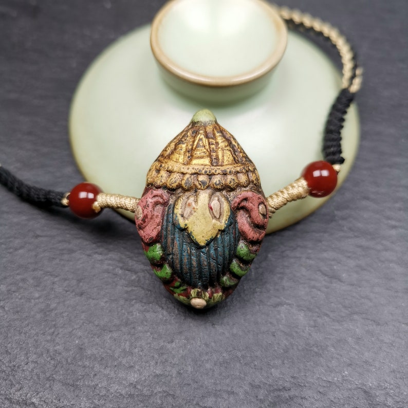 Tsa Tsa originated from India and was introduced to Tibet in the seventh century. It is extruded through a metal mold, and the cement is mixed with wheat grains, treasure powder, spices or the ashes of the monk. The patterns on it were mainly in Indian style in the early days, such as the Sky Tower, Gate Tower, Bodhi Pagoda, and the mantras of the Prajna Paramita Heart Sutra. Later, Tibet began to make its own molds, and the patterns of gods and Buddha images and the six-character mantra began to replace the earlier Indian style.