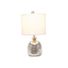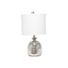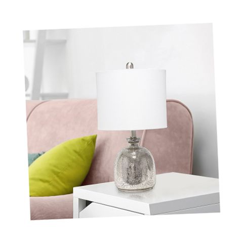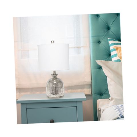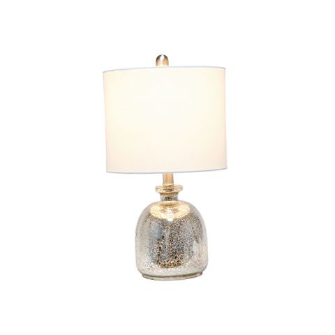 With a textured glass base and gray fabric drum shade, this lamp is sure to update any room in your home with a little charm. This lovely lamp is crafted with an open bottom glass base in a silver metallic color. Perfect for adding the little refresh to your living room, bedroom, foyer or office that you've been looking for!