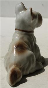 Here is a great vintage Ceramic Hand Painted Made in Japan Brown and White Dog sitting with Brown Collar Cute Dog Figurine. It is Awesome. It is marked Japan on bottom-SEE ALL PHOTOS. It measures about 3 inches tall by about 3 3/4 inches long. Grab this great collectible while you still can it will not last long.