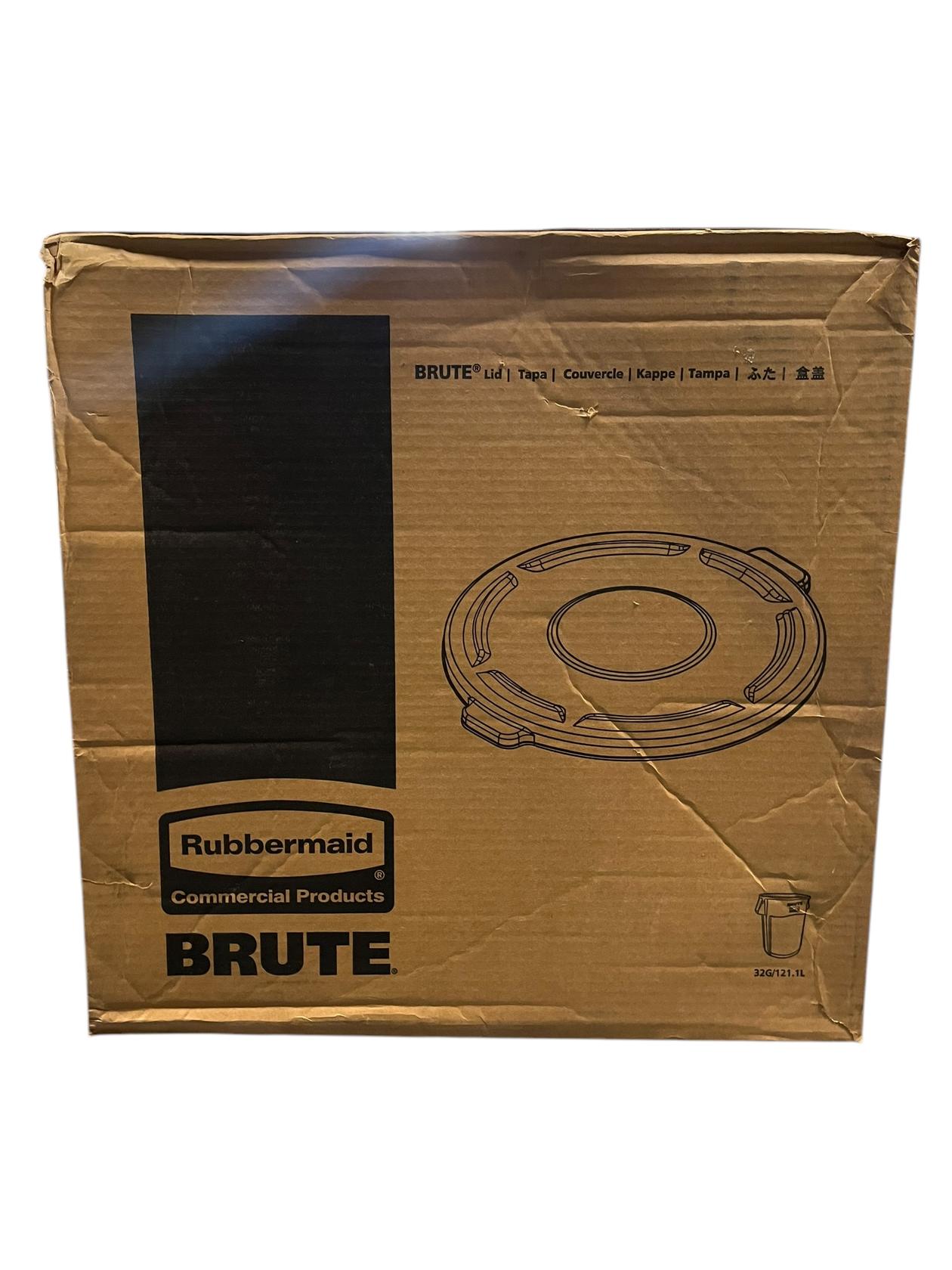 The Rubbermaid Commercial BRUTE Round Trash Can Lid fits Rubbermaid Commercial BRUTE trash cans (sold separately). All-plastic, professional-grade trash can construction will not rust, chip, or peel, and resists dents. The strong, snap-on lids enable secure, stable stacking. Lid Type: Flat Top; Material(s): Plastic; Color(s): Gray; Shape: Round.