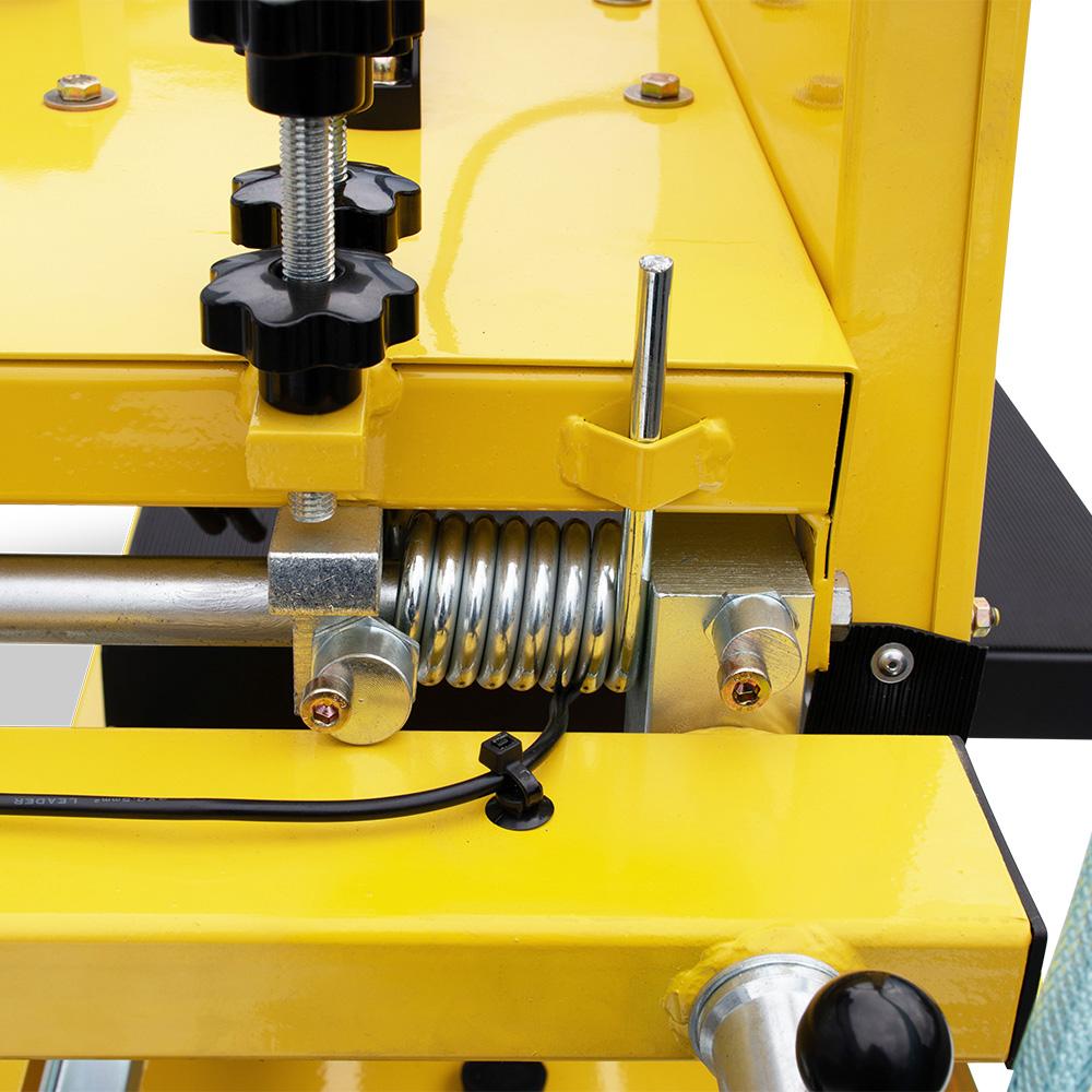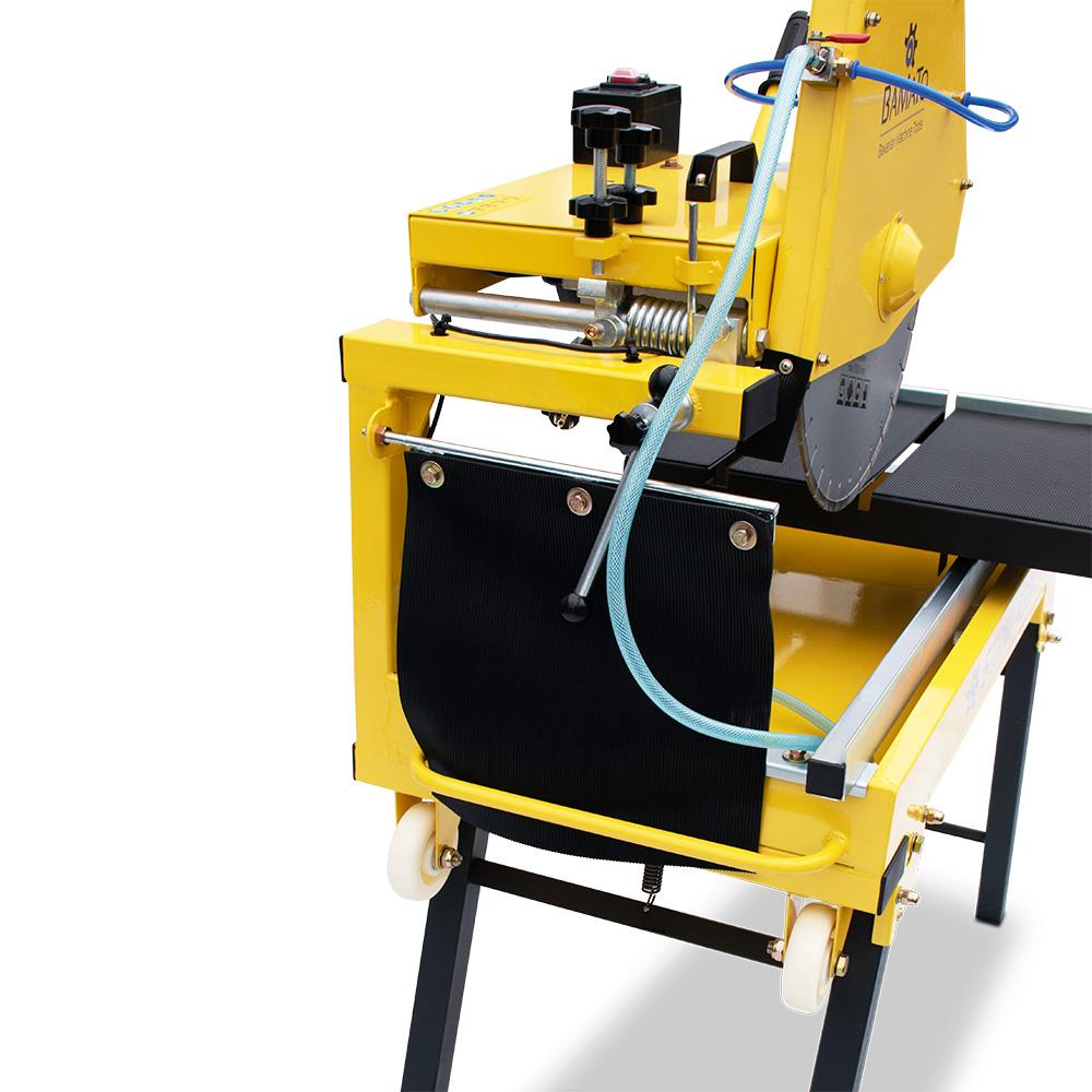 - Gummischürze hinter dem Sägeaggregat zur Rückführung des Spritzwassers