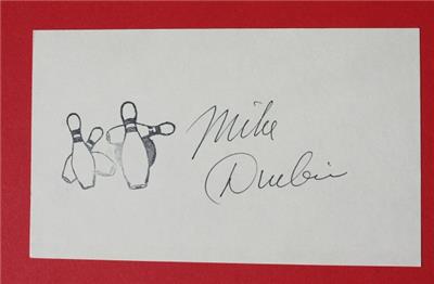 Here is a great vintage authentic Mike Durbin PBA Professional Bowler hand signed Autographed 3X5 with Bowling pins and Bowling ball stamp Card. It has a NEW 4X6 photo on an overall 8 1/2 X11 autographed set. I personally obtained all of these autographs myself all are 100 percent authentic. It is Awesome. It measures about 11 inches tall by about 8 1/2 inches wide. Great Vintage Bowling Autograph-SEE ALL PHOTOS! Grab this great vintage collectible while you still can at this price it will not last long.