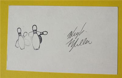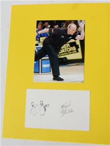 Here is a great vintage authentic Hugh Miller PBA Professional Bowler hand signed Autographed 3X5 with Bowling pins and Bowling ball stamp Card. It has a NEW 4X6 photo on an overall 8 1/2 X11 autographed set. I personally obtained all of these autographs myself all are 100 percent authentic. It is Awesome. It measures about 11 inches tall by about 8 1/2 inches wide. Great Vintage Bowling Autograph-SEE ALL PHOTOS! Grab this great vintage collectible while you still can at this price it will not last long.