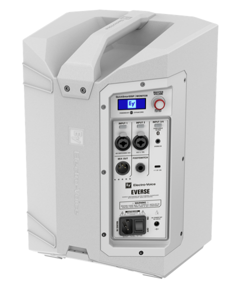 EVERSE 8 is driven by a high-efficiency Class-D amplifier and DSP module developed in collaboration with the world-class audio electronics engineering team at EV’s sibling brand Dynacord. Pro features include a built in four-channel digital mixer with studio-quality effects and processing, 48 V phantom power, feedback suppression and audio ducking. Between the EV and the D badges, you get the best of both worlds.