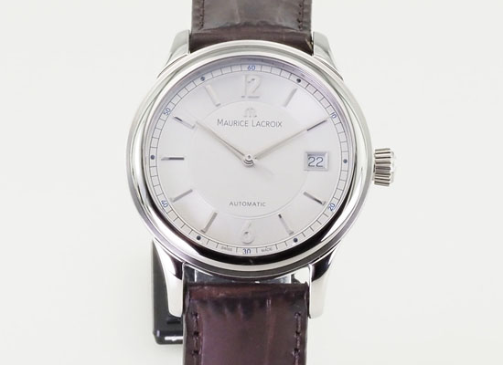 Marke: Maurice LacroixArtikelnummer: LC6027-SS001-123-1 Modellname: Les Classique Anzeige: Analog Uhrwerk: schweizer Automatik Kaliber ML115 , 26 Steine. Funktionen: Stunden-, Minutenanzeige und Sekundenanzeige , DatumsanzeigeMaterial: Edelstahl Oberfläche: polierte Oberflächen Gehäuse Höhe: 10,3 mm Gehäuse Maße: 38,5 mm Zifferblattfarbe: silber Zeigerfarbe: silberfarben Index: silberfarben Uhrglas: entspiegeltes Saphirglas Gehäuseboden: gedrückter Gehäuseglasboden Uhrband: Leder mit Dornschliesse Uhrbandbreite: 20 mm Uhrbandfarbe: braunfarben maximaler Armumfang: 200 mm minimaler Armumfang: 160 mm Gewicht der Uhr: ca. 63,5 gramm Waterresistant: 3 ATM neu und ungetragen Geliefert in original Maurice Lacroix Uhrenverpackung mit Papiere bisheriger Preis liegt bei 1290 Euro