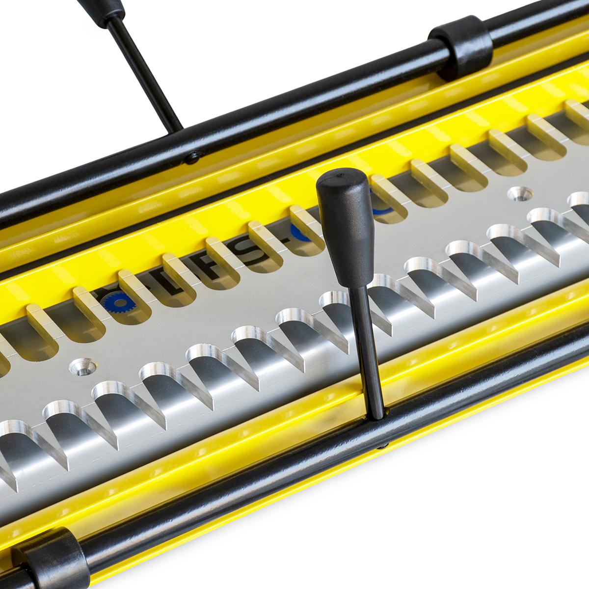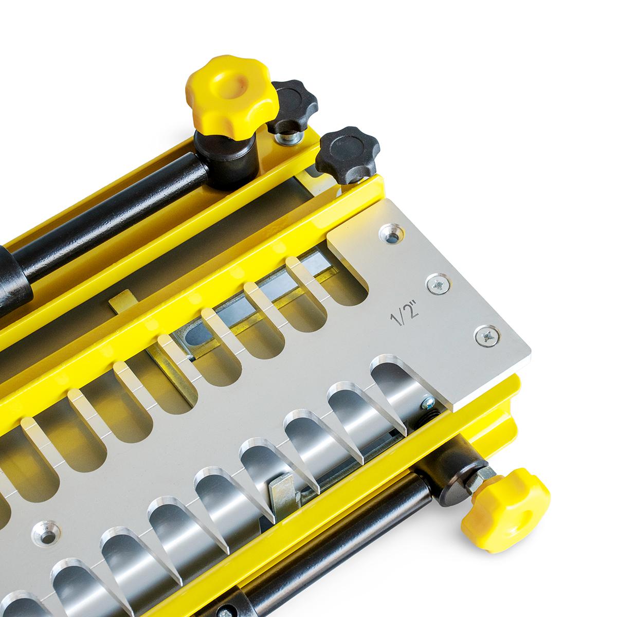 - Kompakte Frässchablone zum gleichzeitigen Fräsen beider Verbindungsstücke für Zinkenverbindungen
