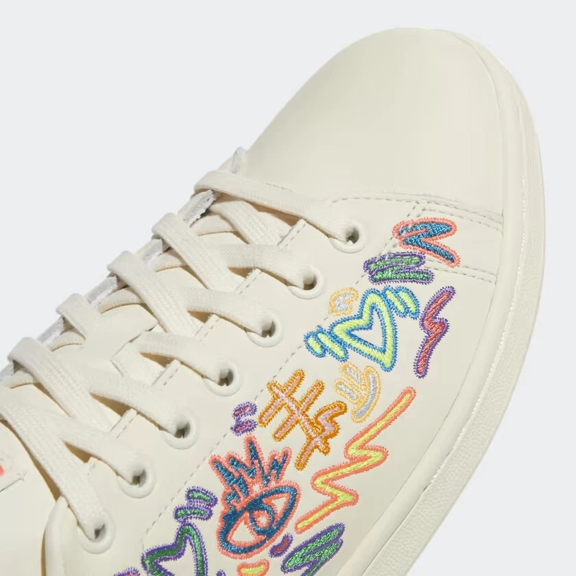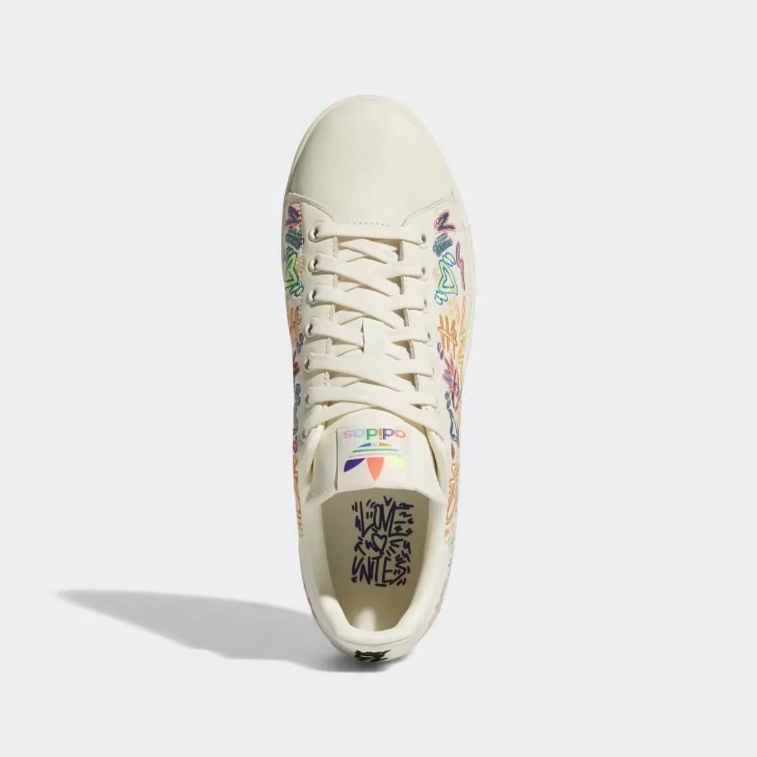 Liebe. Diversität. Freude. Alles Dinge, die wir in vollen Zügen feiern, und diese adidas Stan Smith-Schuhe tun es besonders laut. Grafiken erscheinen überall verteilt und geben in leuchtenden Farben ein kraftvolles Statement ab.