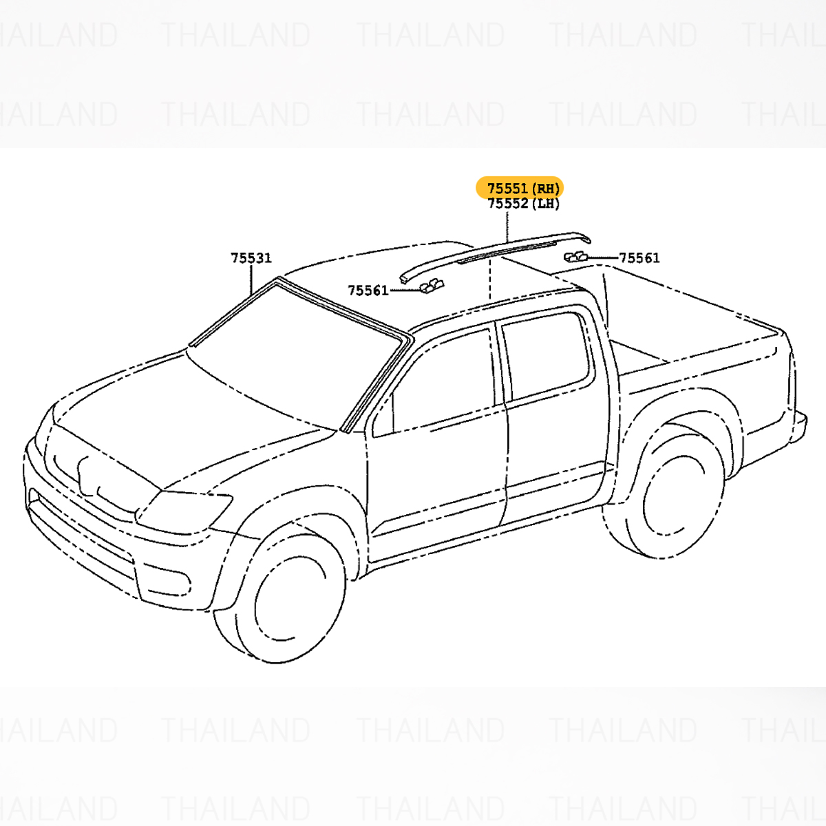 Rh Moulding Roof Drip Side Finish For Toyota Vigo Hilux 2Dr Cab 2004 - 2015