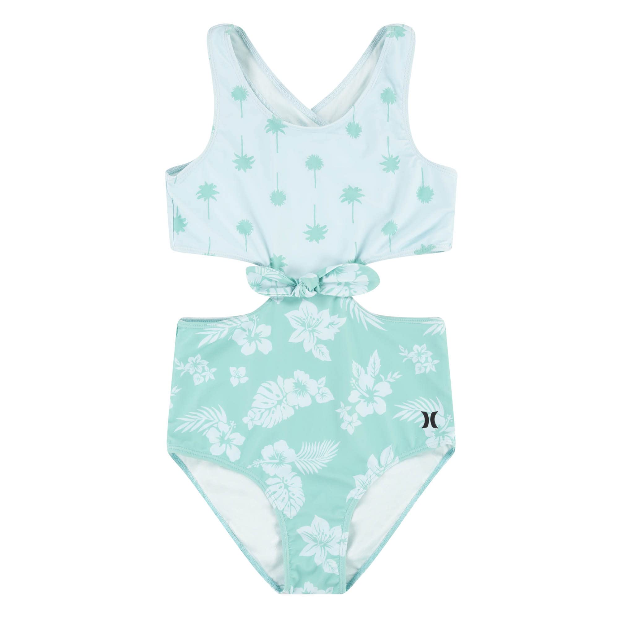 Description Style your little girl in the pretty design of the floral-printed Hurley Kids Tie Front Monokini set. Made from a UPF 50 poly tricot fabric with an allover print and a crepe lining. Round neckline and sleeveless construction. Tie-up detailing on the front. Hurley logo on the front. 81% polyester, 19% elastane. Machine washable.