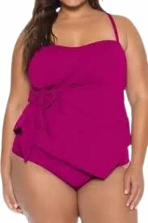 Becca Etc gives you classic coverage at the beach in these plus size hipster bikini bottoms with ruched tabs.