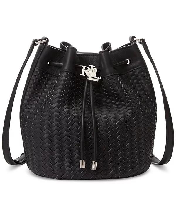 LAUREN Ralph Lauren Andie Woven Leather Small Drawstring Bag Purse Black Rt $425