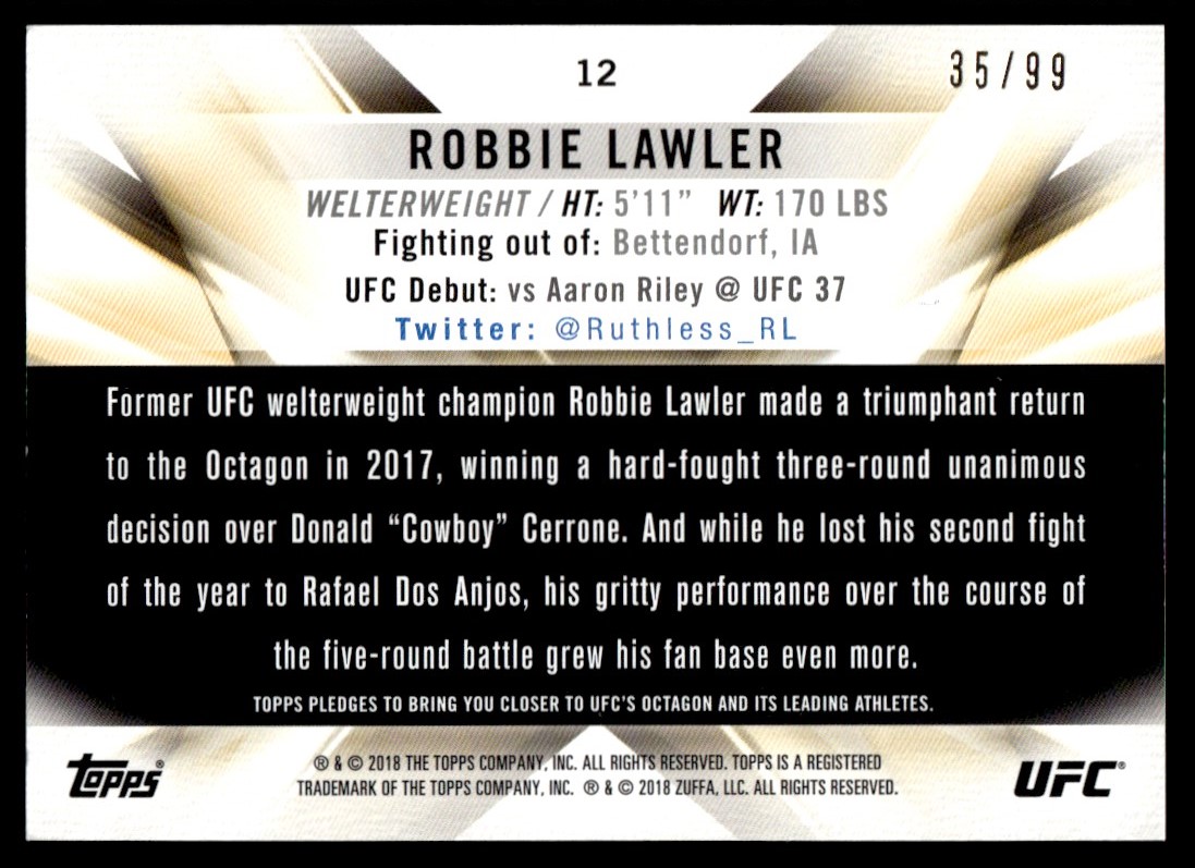 2018 Topps UFC Knockout Blue Robbie Lawlar 35/99 #12
