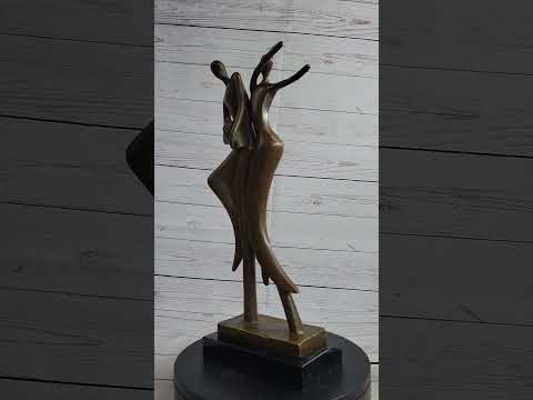 The suggestive male figures symbolize the rejoice of the soul through the expression of music. The leading figure keeps a rhythm on his bongo while the other sways and dances to the song of the spirit. This is a great work of art, simplistic and meaningful, for those in which music is their life's vibration. The sculpture was cast using the ancient method of lost-wax casting and stained with a brown patina finish for preservation. They are mounted upon a black marble base with the artist Milo's signature.