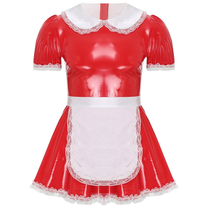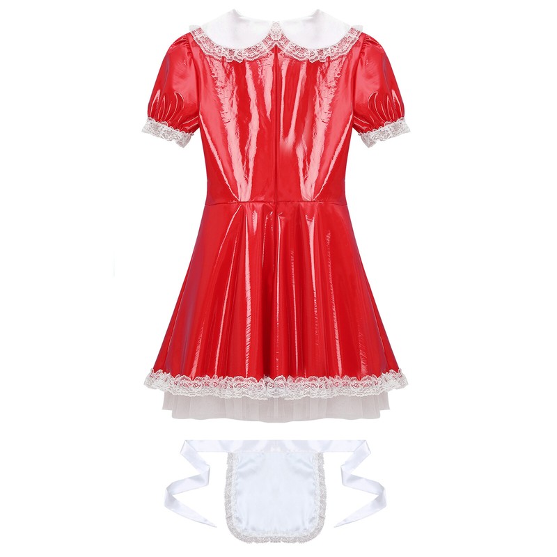 Mens Dress Pleated Maid Sexy Cosplay Back Zipper Uniform Shiny Costume Stage