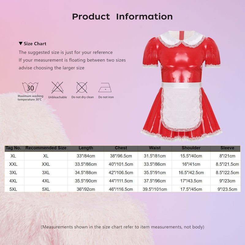 Suitable for nightclub, themed party, masquerade, transvestite, cosplay, dress-up party, Valentine’s Day, carnivals, Halloween, drag queen, etc.Size Chart: The suggested size is just for your reference. If your measurement is floating between two sizes, advise choosing the larger size. (Measurements shown in the size chart refer to item measurements, not body)