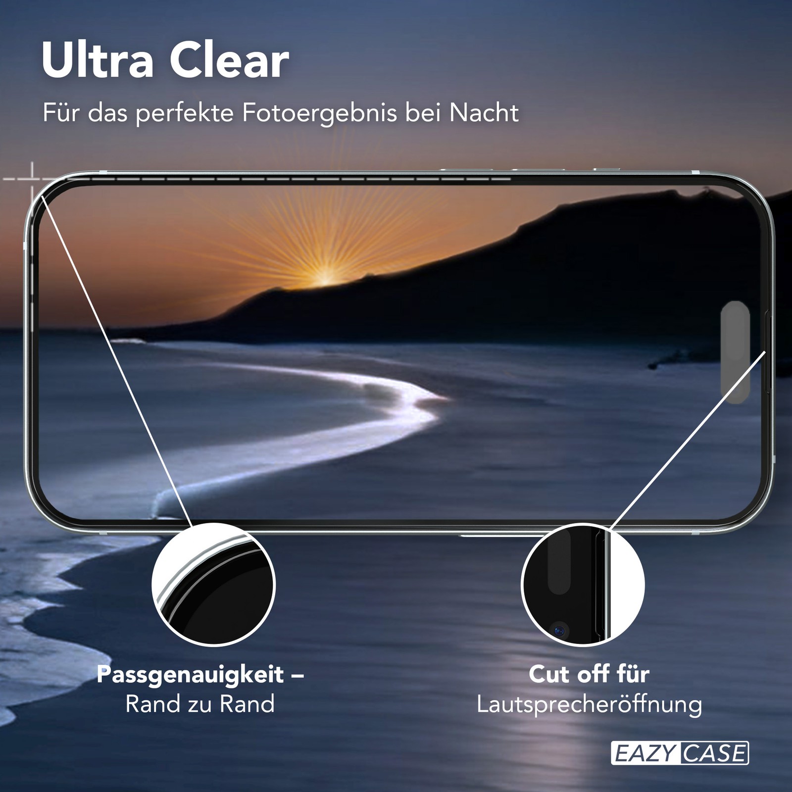 Unser ""No Notch Design"" passt perfekt zum iPhone. Die kleine Einkerbung ermöglicht die Nutzung der Displayschutzfolie mit abgerundeten Kanten, während die Lautsprecher präzise ausgespart wurden.