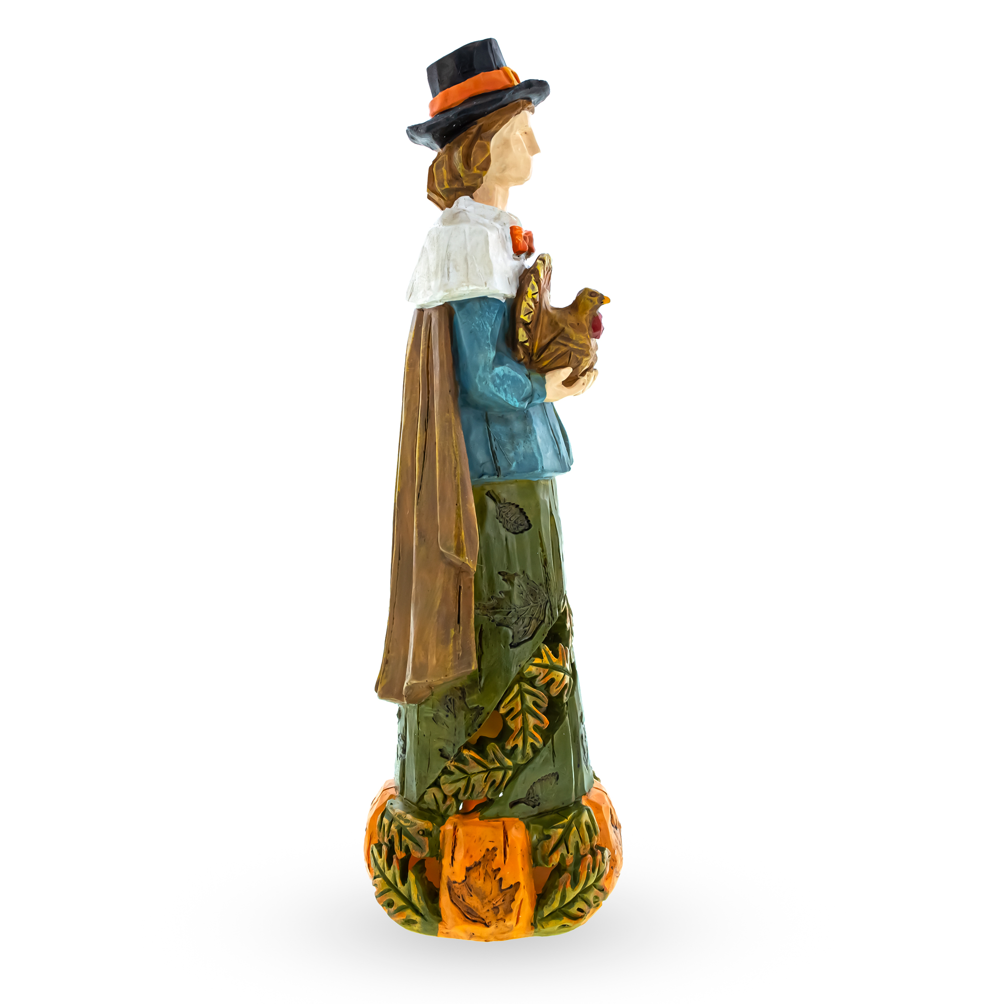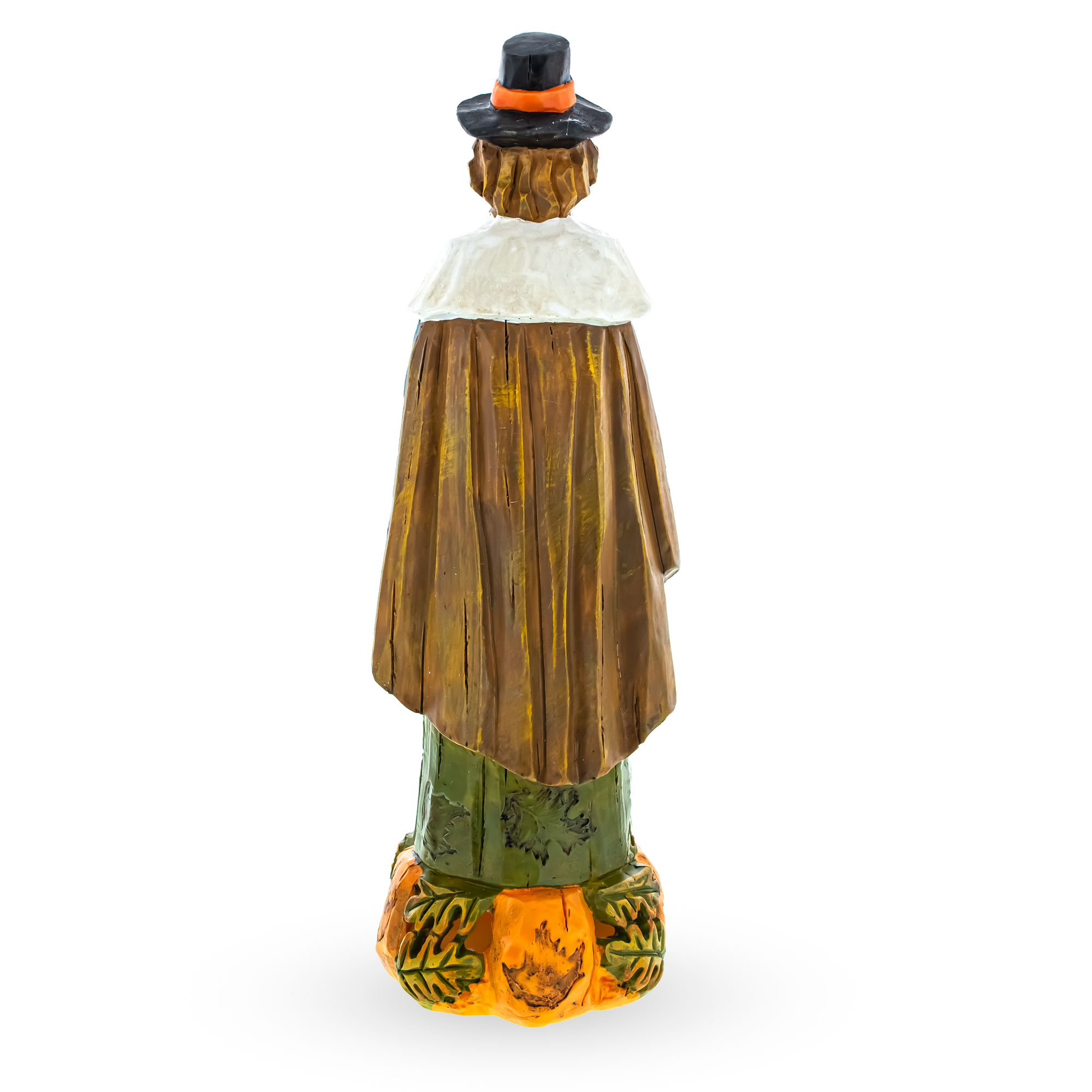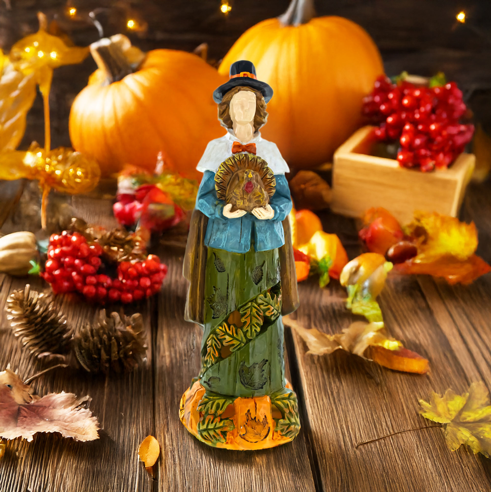 Pilgrim Figurine with Turkey – Autumn Thanksgiving Decorative Accent Figurine