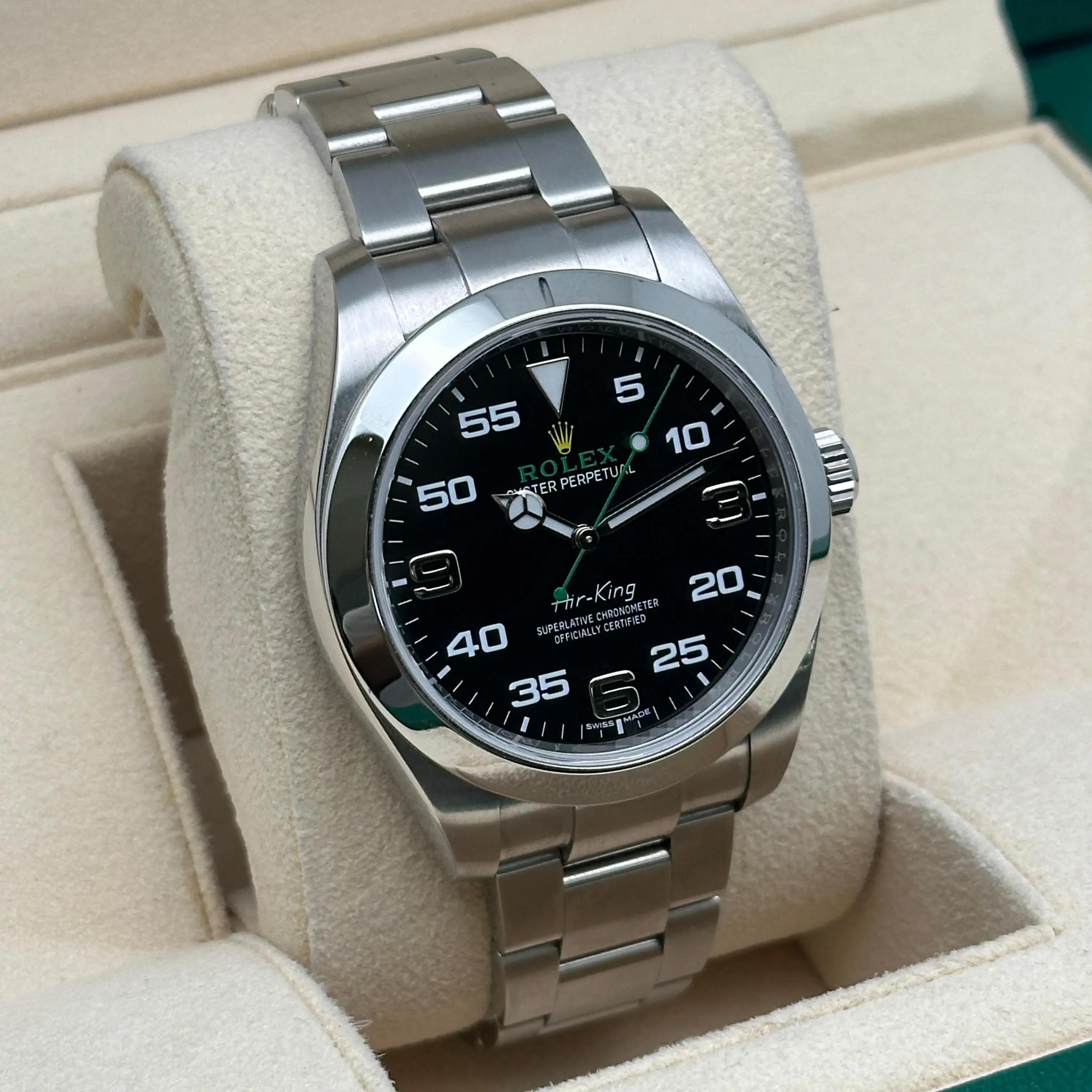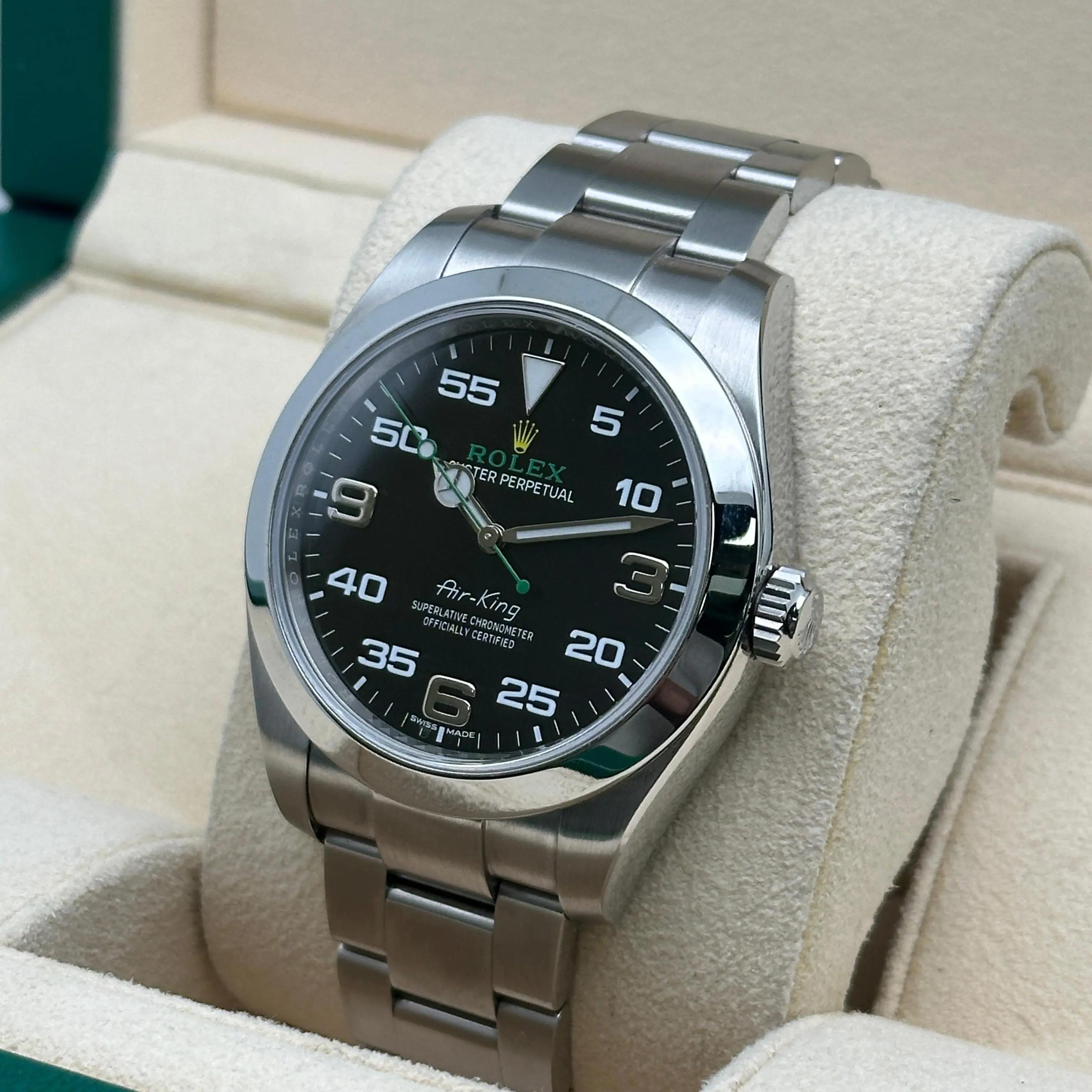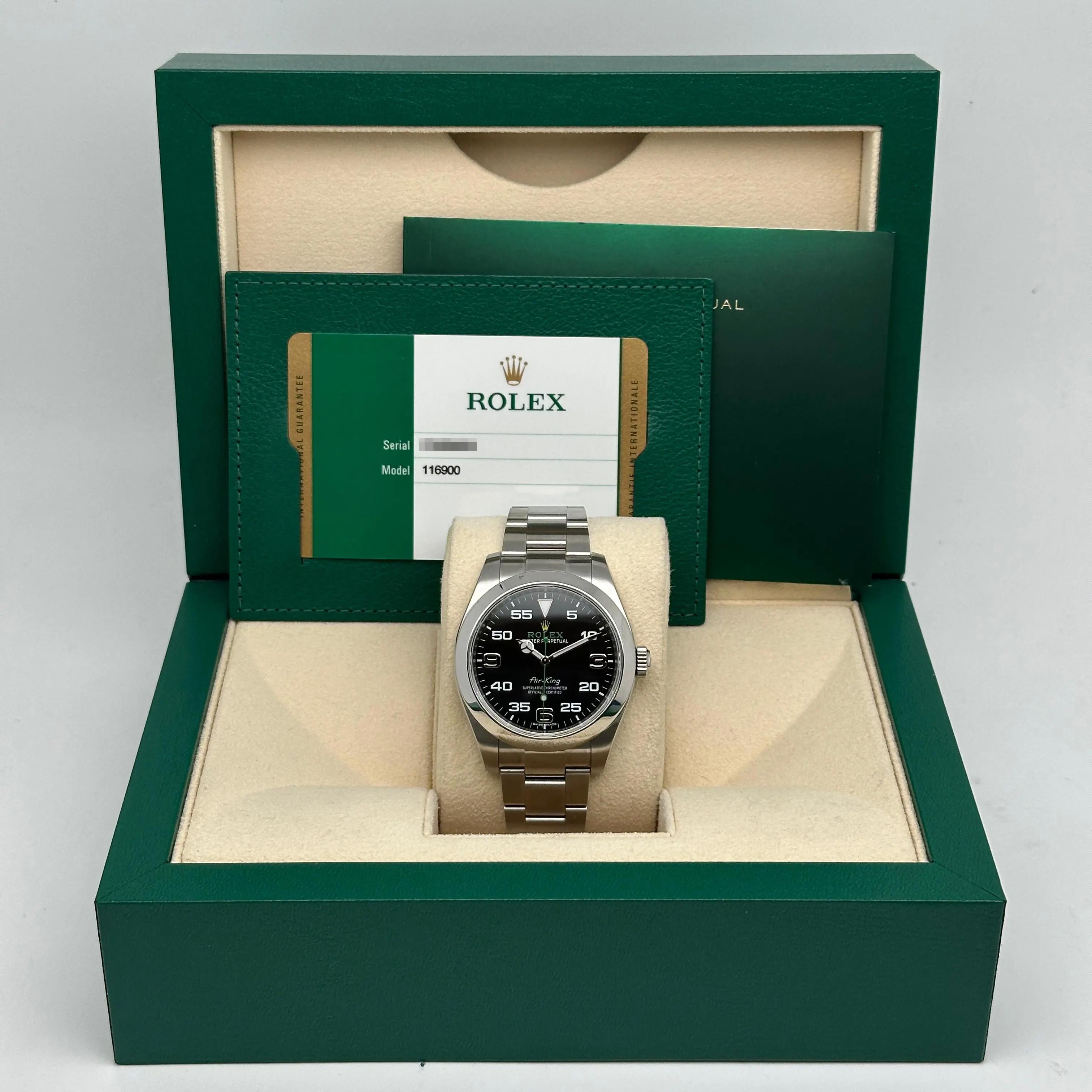 Mint Rolex Air-King 116900 Green Hand Steel Black Dial Automatic Watch B&P