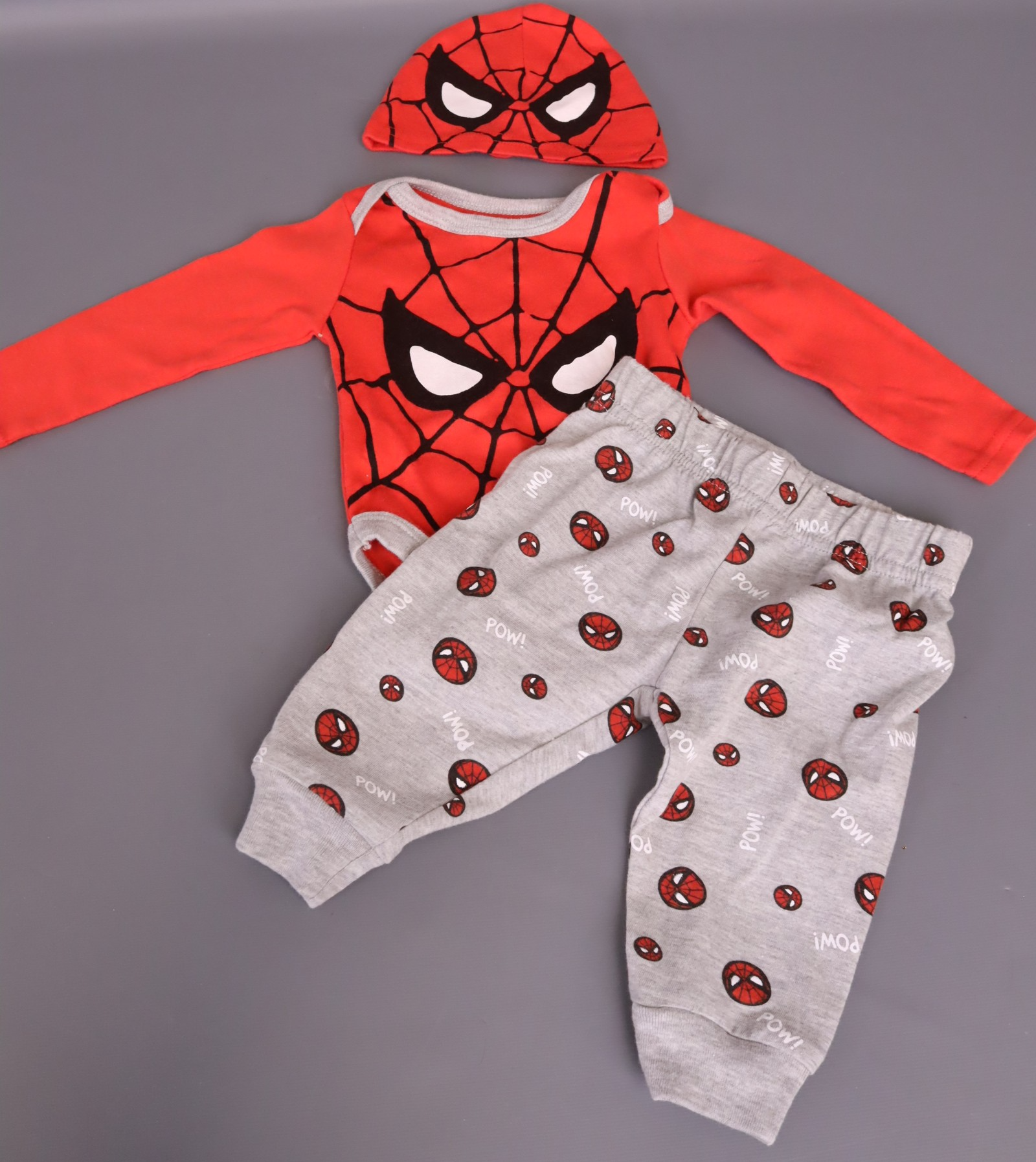 Spiderman Baby Boys Clothing 3Pcs Set with Bodysuit, Pants, and Hat Size 3-6 M