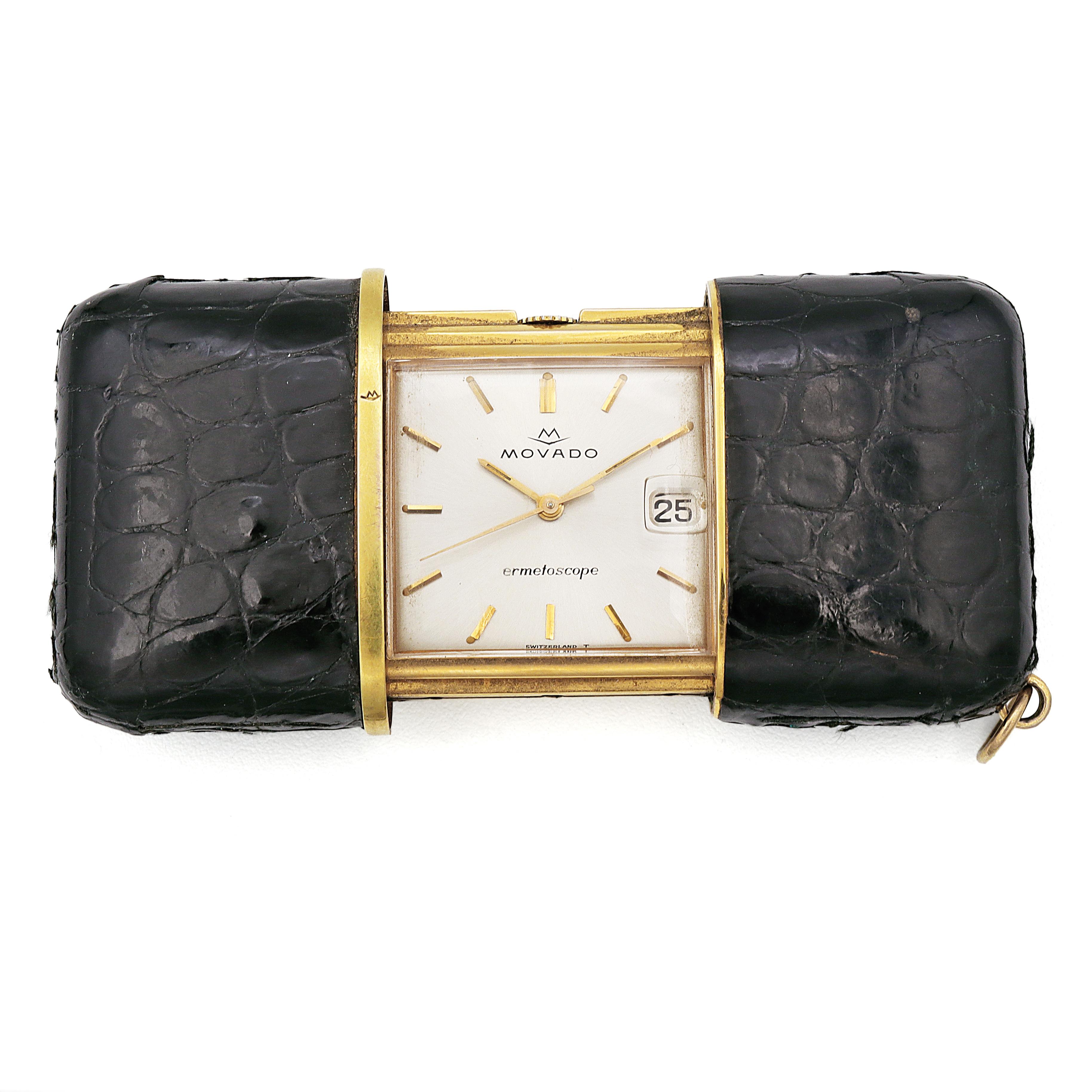 Vintage Movado Ermetoscope Men's Hand Wind Date Travel Pocket Watch