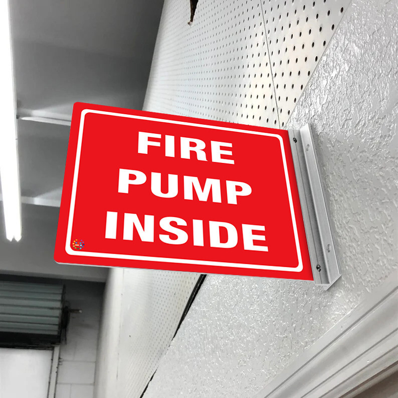 Clearly indicate the location of essential fire safety equipment with our Fire Pump Inside Double Sided Off Wall Sign (OFF25). This sign is vital for marking fire pump rooms or enclosures in workplaces, hospitals, schools, shopping centres, airports, industrial facilities, and other high-traffic environments where rapid access is critical for fire response. It ensures that staff, emergency responders, and authorised personnel can quickly locate fire pumps during emergencies, supporting immediate action and reducing potential hazards. The bold, easy-to-read text and universally recognised fire pump symbols enhance visibility, provide rapid recognition, and promote correct and timely use in urgent situations. Constructed from durable, weather-resistant materials, this sign maintains clarity and legibility in both indoor and outdoor conditions. The premium aluminium double-sided bracket provides long-lasting strength, corrosion resistance, and secure wall mounting. Its outward projection ensures maximum visibility from multiple directions, guaranteeing that fire pumps are easily seen, accessible, and ready for operation whenever emergencies occur, supporting overall workplace safety and compliance with fire safety standards.TOUGH AND WEATHER-RESISTANT: Crafted from durable, high-strength metal built for long-term indoor and outdoor use. The solid aluminium bracket secures the Off-Wall projection firmly, preventing movement or detachment while providing clear visibility from multiple angles in corridors, hallways, and building exteriorsVERSATILE SIZE OPTIONS: Supplied in 250mm x 180mm and 300mm x 225mm dimensions to accommodate a range of installation requirements. The smaller format fits compact or restricted spaces, while the larger version ensures bold, highly visible identification for high-traffic areas, including offices, factories, warehouses, and public spacesLONG-LASTING PRINT PERFORMANCE: Printed with professional-grade eco-solvent or latex inks designed to resist fading, abrasion, and environmental wear. Text and pictograms remain crisp and legible over time, maintaining professional presentation and compliance indoors and outdoors under sunlight, rain, and humiditySECURE AND SIMPLE INSTALLATION: Comes with a durable aluminium bracket and matching screws for reliable wall mounting. The anodised aluminium finish provides corrosion resistance and structural stability, keeping the display firmly fixed in exposed outdoor, industrial, or high-moisture environmentsVISIBILITY AND REFLECTIVITY OPTIONS: Offered in standard finish for everyday readability, Class 2 reflective for high-contrast visibility under headlights or low-light conditions, and luminous version for glow-in-the-dark clarity during night hours or power outages, supporting continuous hazard communication and safety awareness