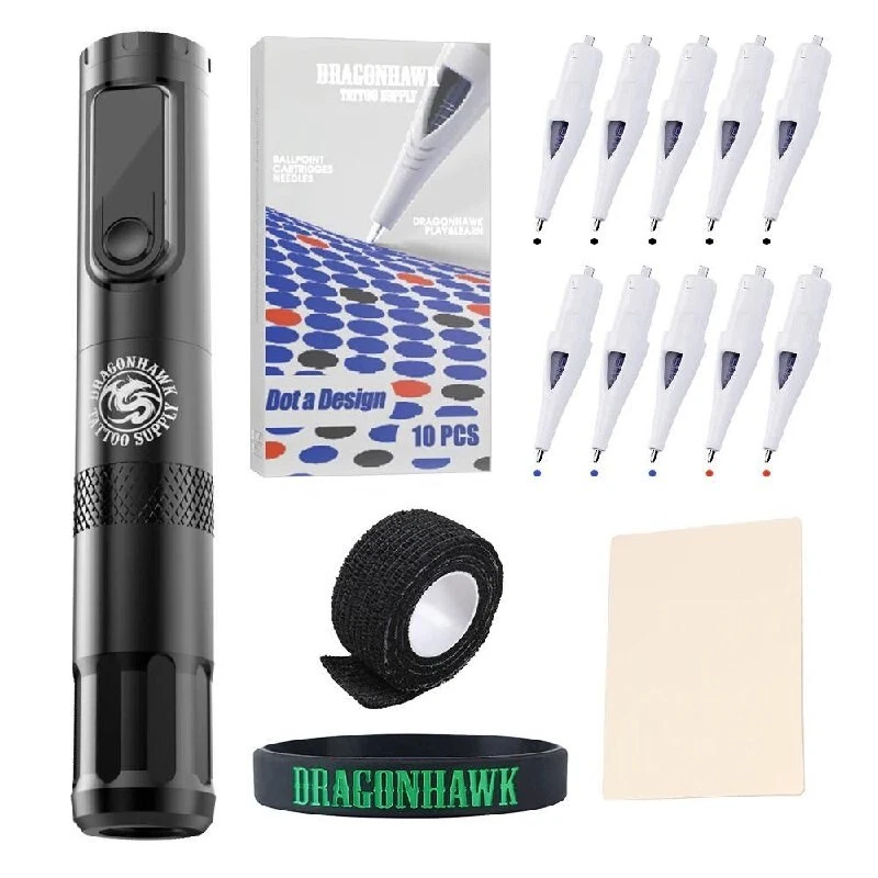 X4 Wireless Tattoo Pen Machine Gun Kit with Ballpoint Cartridges for Practice