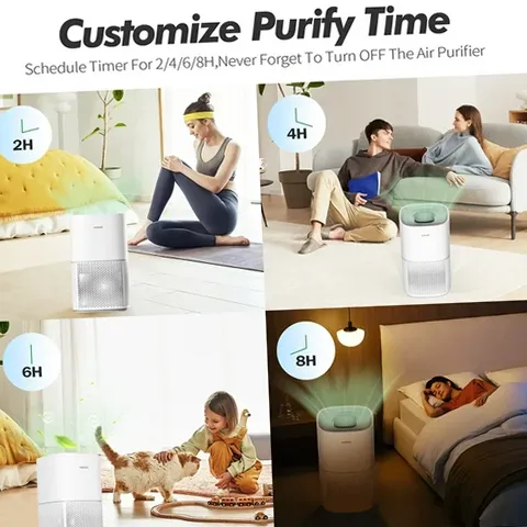 • Timers & Speed & Child-Lock: 4-Timer-Options (2H/4H/6H/8H) allow you set the pet air purifier operating time when go out, the pure air waits for your back home. The air purifier for dust has 4-Fan-Speeds, adjust the required fan speed mode (Sleep/Low/Med/High) to capture as much air pollutants as required. Child-Lock prevents error operations caused by pets or children.