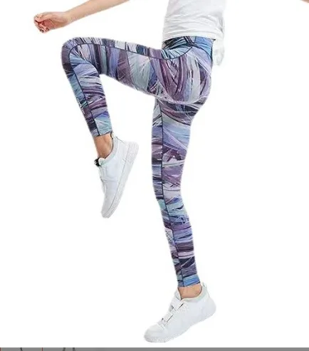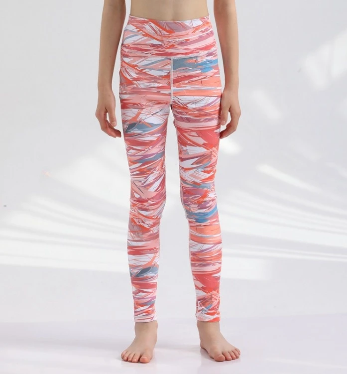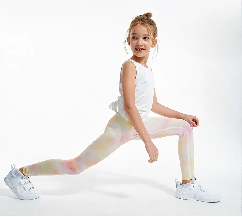 4-14Y Girls Yoga Pants Soft Kids Stretch Trousers Printed Children's Active Dance Running Workout Leggings Thin Sports Tights