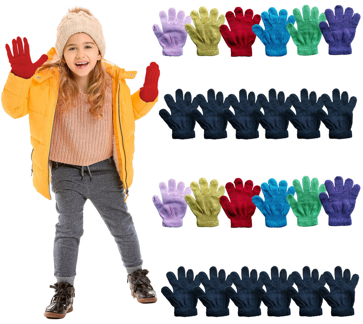 WHOLESALE KIDS GLOVES & MITTENS:We stock a wide array of colorful kids bulk winter gloves. Striped patterns as well as solid bold colors for boys and girls. Children love the soft fuzzy option as well as the multi colored abundant assortment.COLORFUL BRIGHT UNISEX KIDS COLORS: From solid patterns to striped, the colors are bright and fun. Kids love them! FITS AGES 3-8Our super stretchy glove and mitten kids assortment fits most children in this age group. Younger school age sizing.OUR PRODUCTS ARE POPULAR FOR DONATION TOWARD HOMELESS SHELTER CHILDREN:-We donate all our returns to such causesWARM ACRYLIC: Acrylic provides warmth without being heavy. Easy to clean in washing machine regular cycle.YACHT & SMITH:We specialize in kids wholesale bulk children's gloves and mittens. Best value wholesale packs are popular for best value.