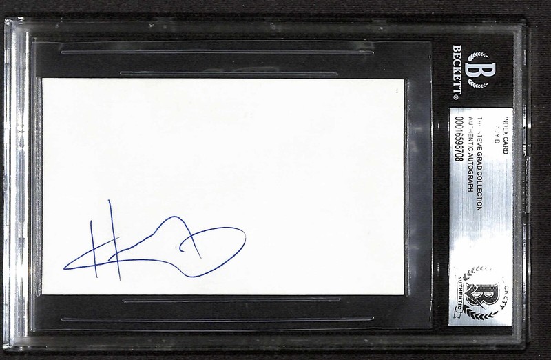 Autographed 3x5 Index Card signed in blue ballpoiont pen by Rapper Heavy D. (Died November 8, 2011). From the Steve Grad Autograph Collection and obtained in person by Steve in Hollywood, California in 2000.. The Autograph has been authenticated by Beckett Authentication Services. The 3x5 is protected in a Beckett slab, similar to small card Slabs this has been designed to hold a 3x5 index card. Any glare present is from the scanner used to scan the slab and is not on the actual item.