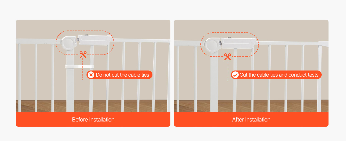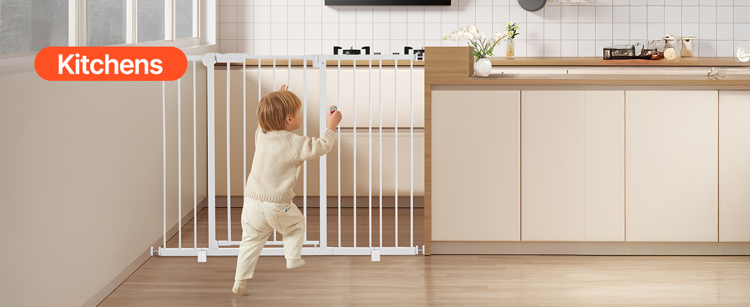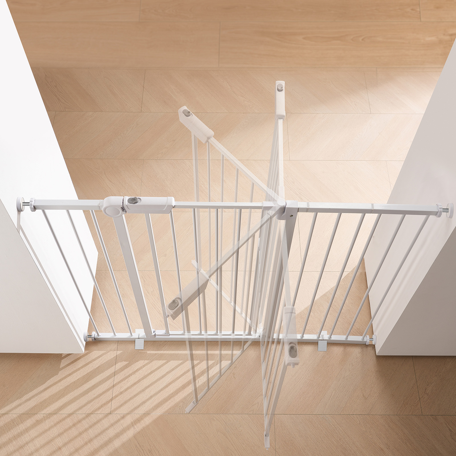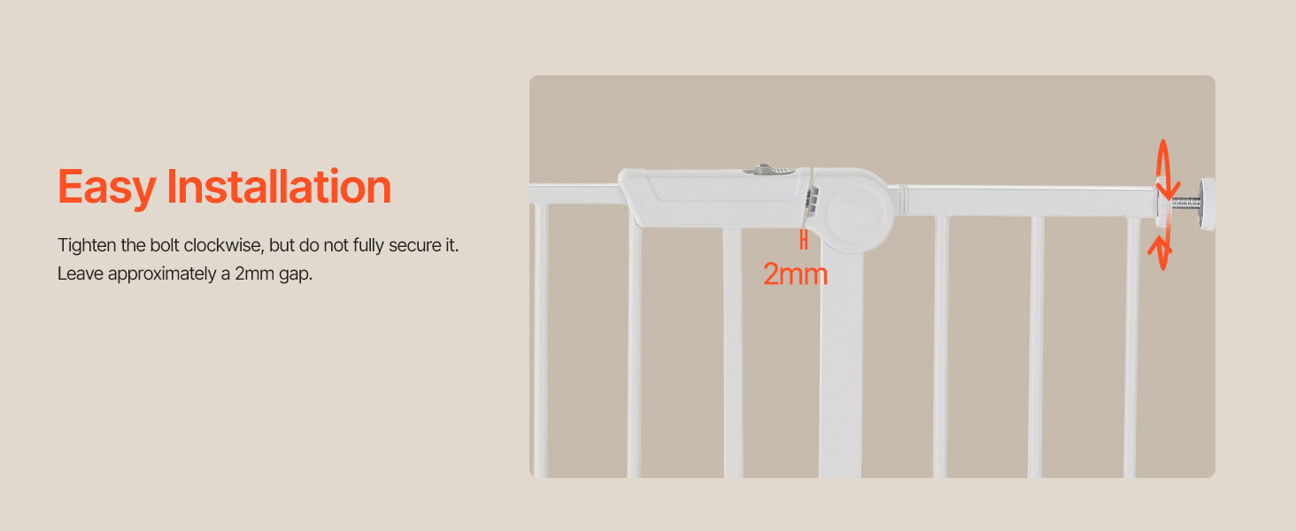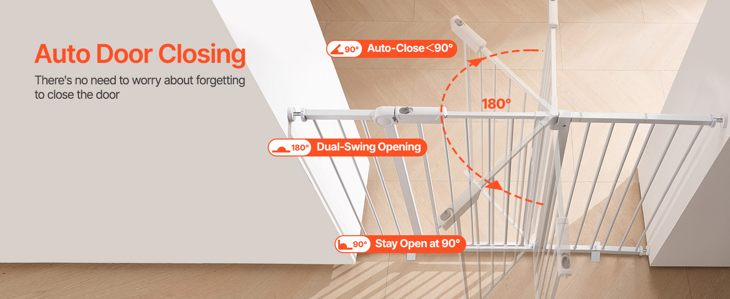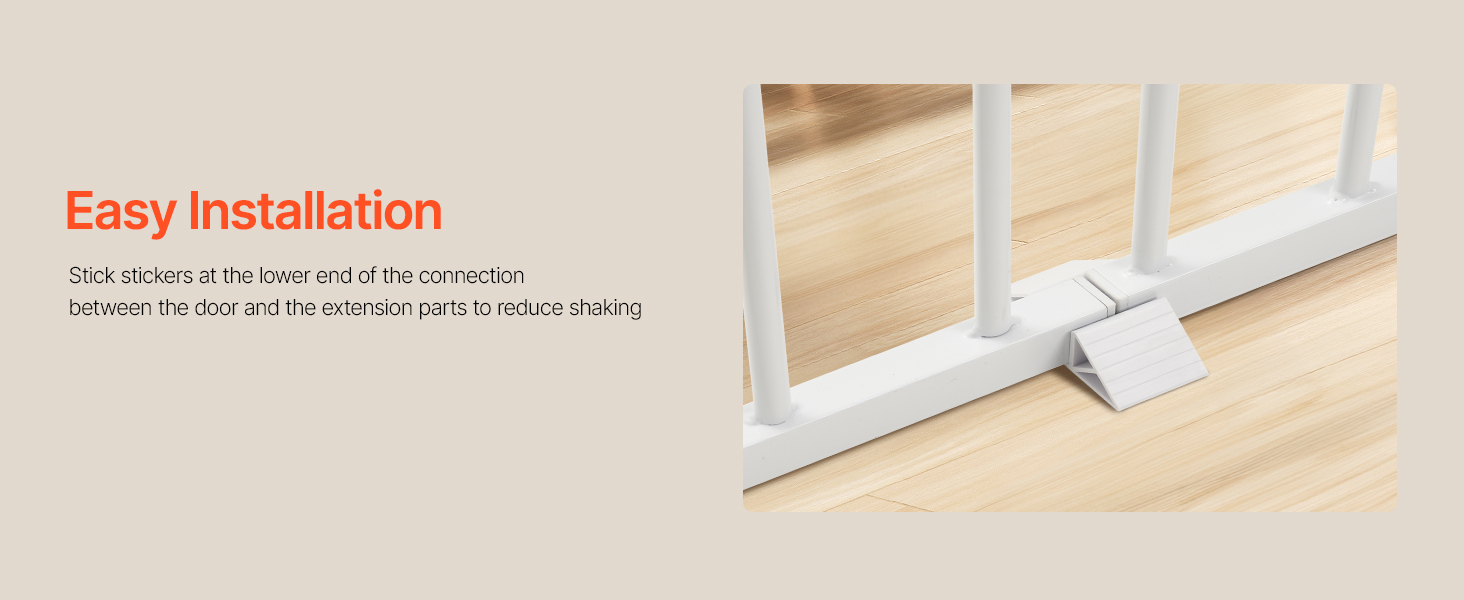 The unique dual-lock system is simple to operate yet difficult for babies to open, avoiding them from accidentally opening the pet gate and entering unsafe areas when unsupervised.