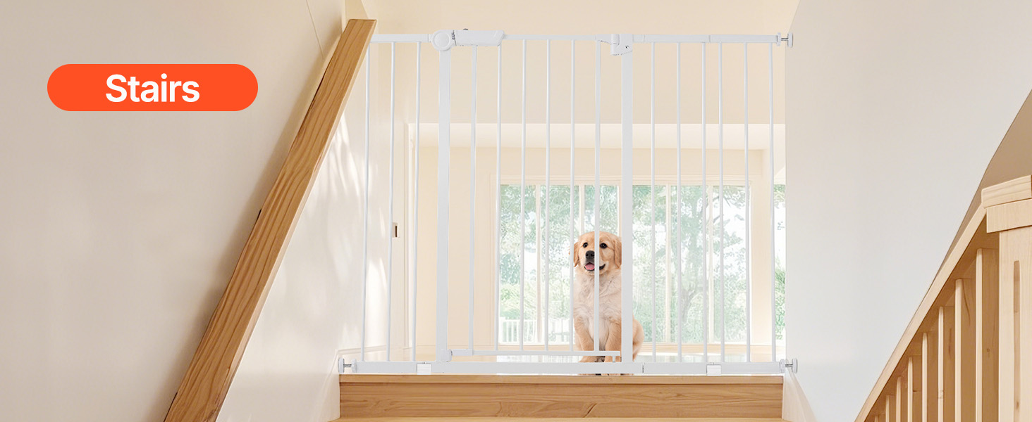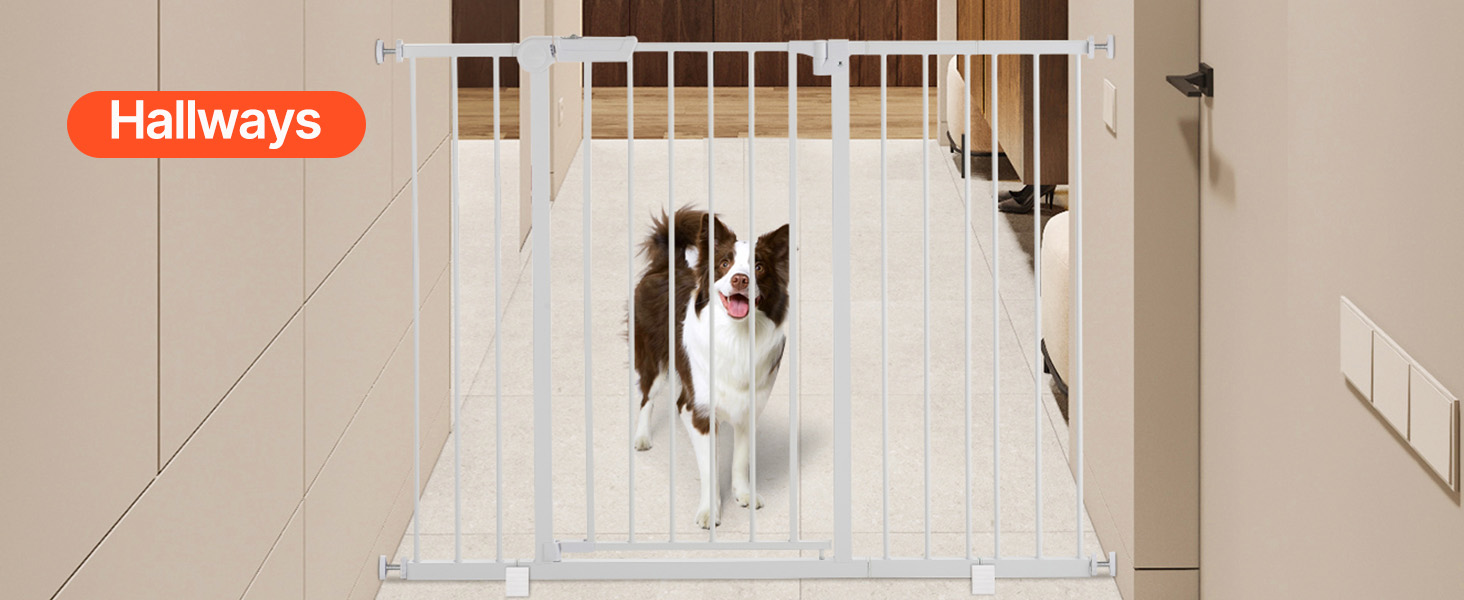 Featuring 2.5" narrow bar spacing, the dog gate effectively avoids babies from slipping their heads through gaps, reducing injury risks. It also keeps pets from squeezing through the bars, ensuring the security of both children and animals.