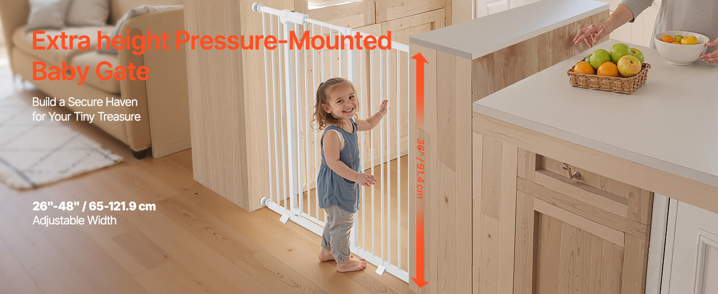 With a height of 36 in / 91.4 cm, this dog gate effectively prevents babies from climbing over and keeps pets out of hazardous areas, creating a safe and secure space for them to play and explore.