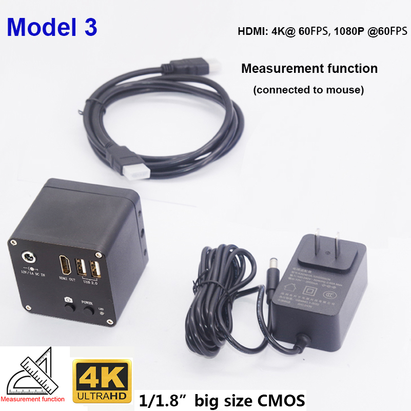 Model 1: has USB / HDMI output, Remote Control, But no measurement function Model 2: has USB / HDMI output, measurement function, but no Remote control Model 3: has HDMI output, measurement function, but no USB output and remote control