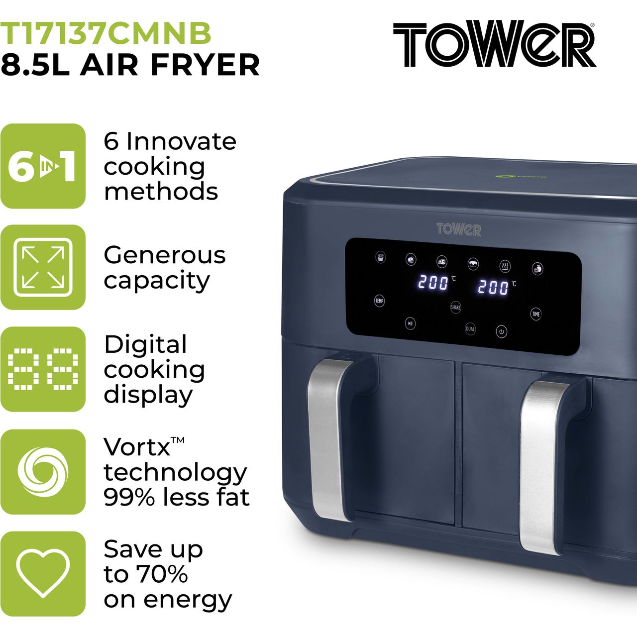 Tower T17137CMNB Air Fryer Free Standing Midnight Blue